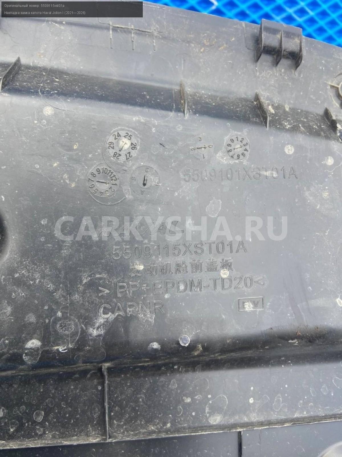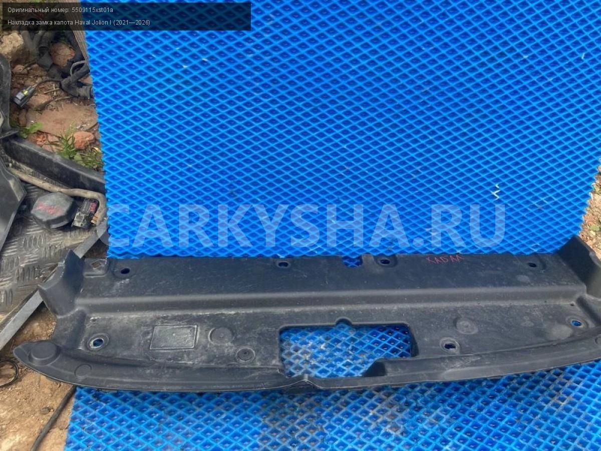Haval Jolion, накладка замка капота.\nАртикул: 8248\n\nОриг. номер: 5509115xst01a\nПроизводитель: Haval\nПримечание:Хавал Джулион, накладка замка капота, б/у. \n\nМарка: Haval\nМодель: Jolion I (2021—2026)\nГод выпуска: 2022\nКузов тип: Внедорожник\nМодель двигателя: инжектор\nОбъем: 1.5\nТопливо: Бензин\nКоробка: Робот\nСовместимости: Haval Jolion I (2021—2026) 1.5 AMT (143 л.с.)\nСовместимость: