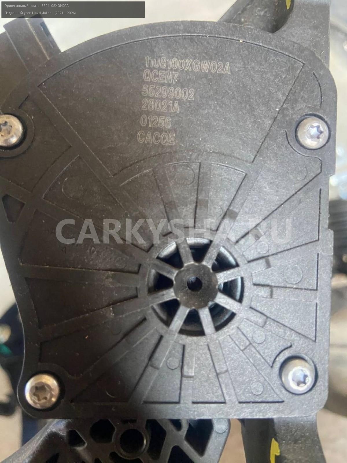 Haval Jolion, педальный узел.\nАртикул: 8401\n\nОриг. номер: 3504108XGH02A\nПроизводитель: Haval\nПримечание:Хавал Джулион , педальный узел, б/у. \n\nМарка: Haval\nМодель: Jolion I (2021—2026)\nГод выпуска: 2022\nКузов тип: Внедорожник\nМодель двигателя: инжектор\nОбъем: 1.5\nТопливо: Бензин\nКоробка: Робот\nСовместимости: Haval Jolion I (2021—2026) 1.5 AMT (143 л.с.)\nСовместимость: