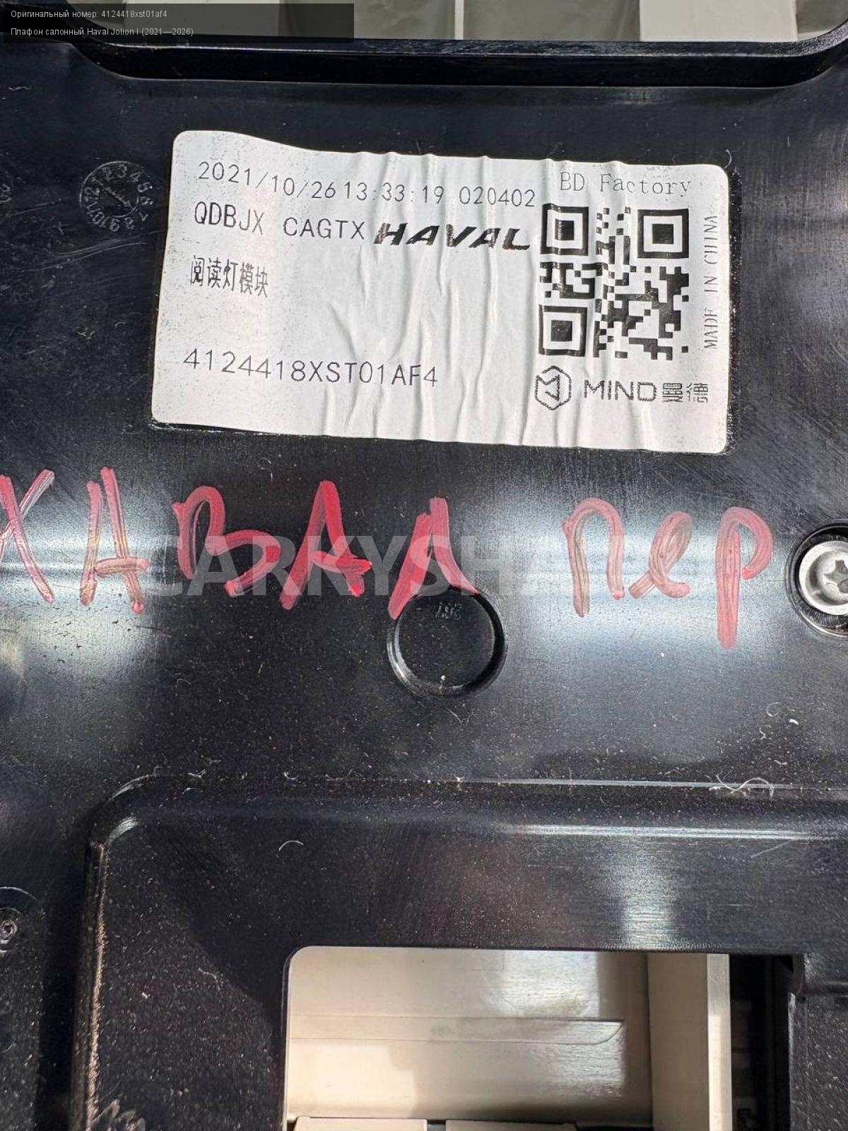 Haval Jolion, плафон освещения передний.\nАртикул: 8548\n\nОриг. номер: 4124418xst01af4\nПроизводитель: Haval\nПримечание:Хавал Джулион, плафон освещения салона передний, б/у. \n\nМарка: Haval\nМодель: Jolion I (2021—2026)\nГод выпуска: 2022\nКузов тип: Внедорожник\nМодель двигателя: инжектор\nОбъем: 1.5\nТопливо: Бензин\nКоробка: Робот\nПеред/Зад: Перед\nСовместимости: Haval Jolion I (2021—2026) 1.5 AMT (143 л.с.)\nСовместимость: