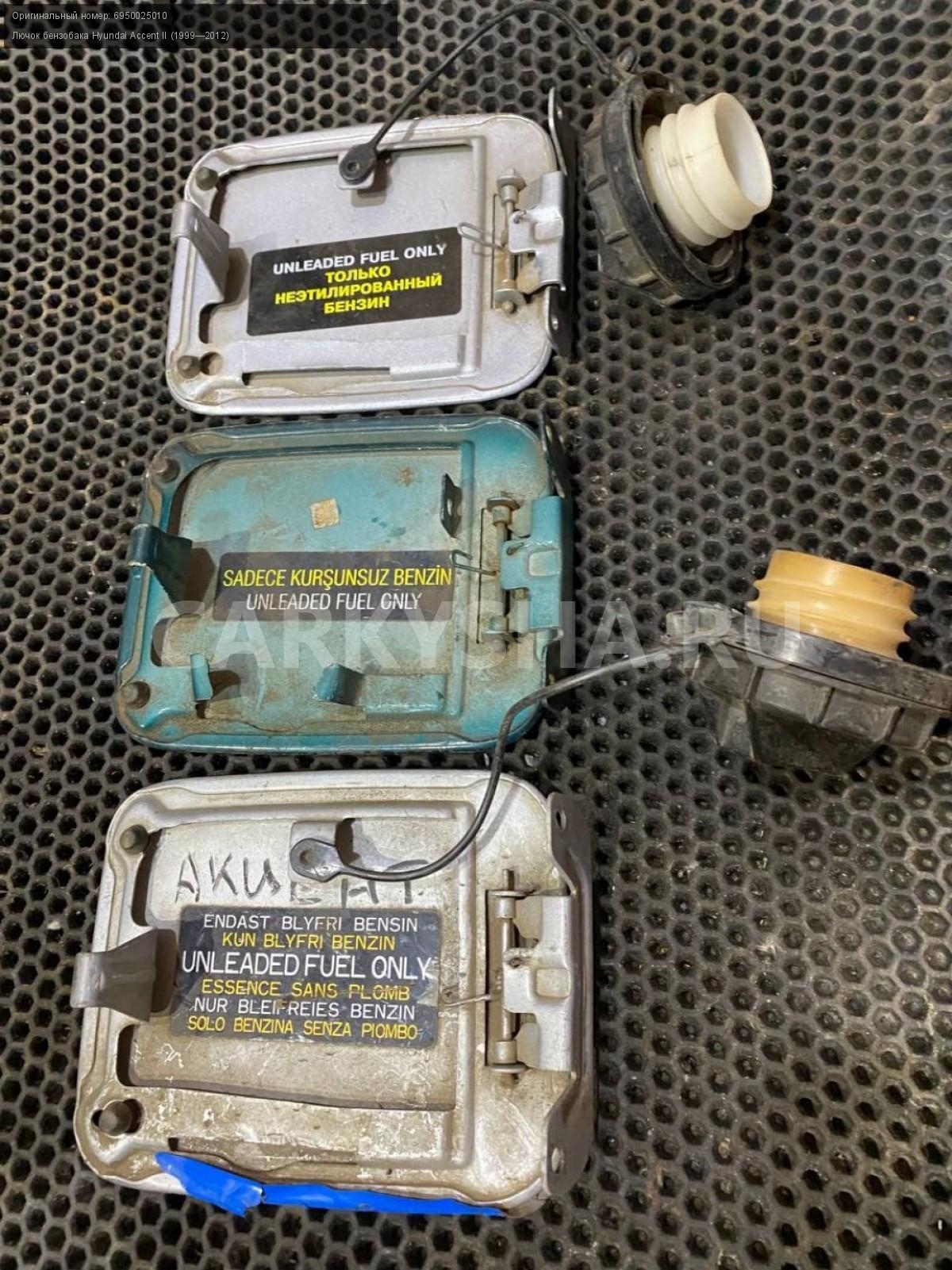 Hyundai Accent, тагаз, лючок бензобака.\nАртикул: 3972\n\nОриг. номер: 6950025010\nПроизводитель: Hyundai-KIA\nПримечание:Хендай Акцент, тагаз, лючок бензобака, б/у. Цена за штуку. \n\nМарка: Hyundai\nМодель: Accent II (1999—2012)\nСовместимости: Hyundai Accent II (1999—2012)\nСовместимость: