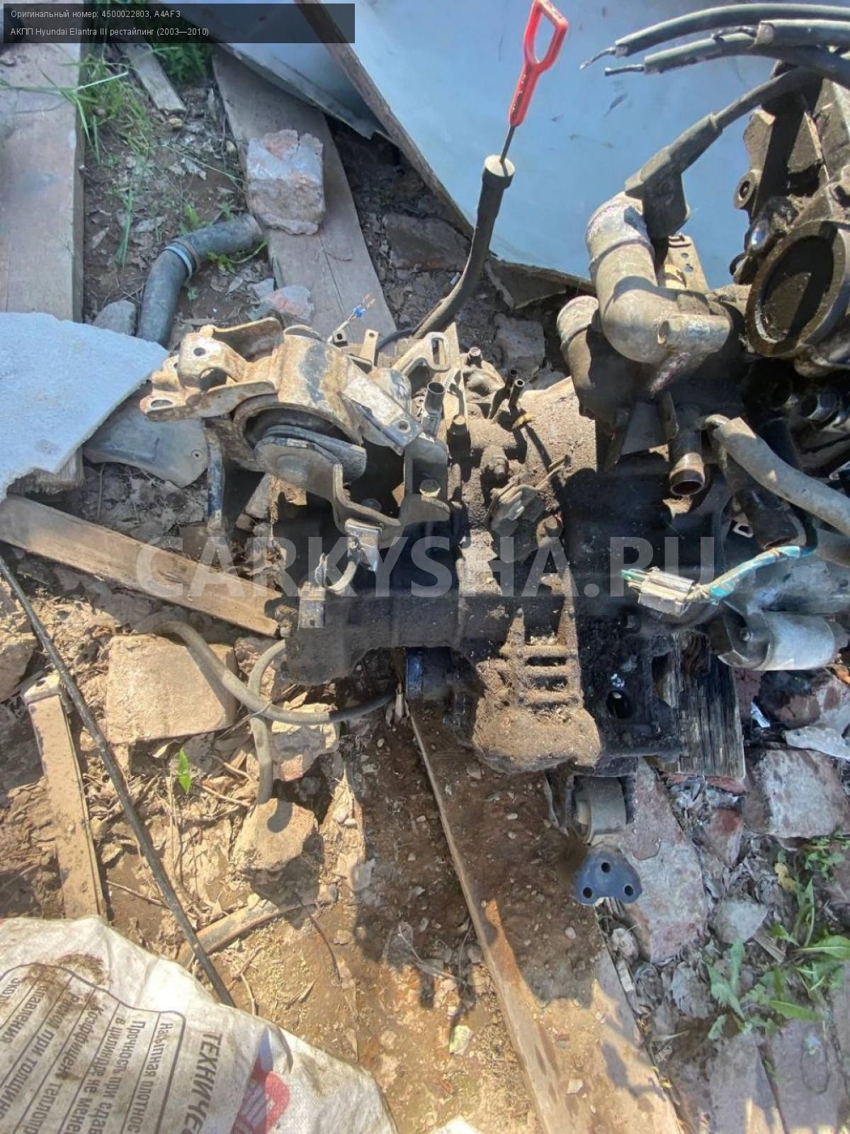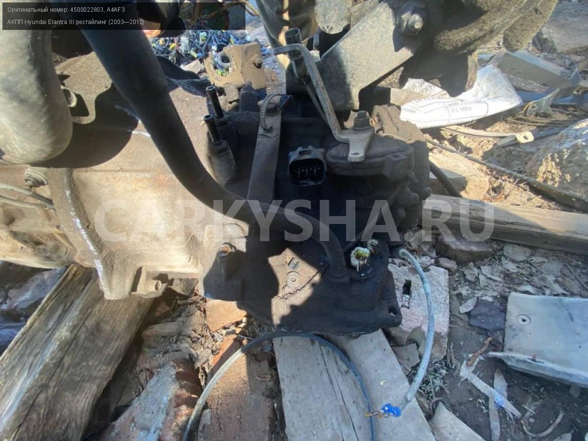 Hyundai Elantra III, АКПП на запчасти.\nАртикул: 5077\n\nОриг. номер: 4500022803\nНомера замен: A4AF3\nПроизводитель: Hyundai-KIA\nПримечание:Хендай элантра 3 1.6 акпп на запчасти ( в аварийном режиме) , A4AF3 , б/у. \n\nМарка: Hyundai\nМодель: Elantra III рестайлинг (2003—2010)\nГод выпуска: 2005\nКузов тип: Седан\nДвигатель номер: G4ED\nМодель двигателя: турбо\nОбъем: 1.6\nТопливо: Бензин\nКоробка: Автомат\nЦвет: Серебристый\nСовместимости: Hyundai Elantra III рестайлинг (2003—2010) 1.6 AT (105 л.с.)\nСовместимость: