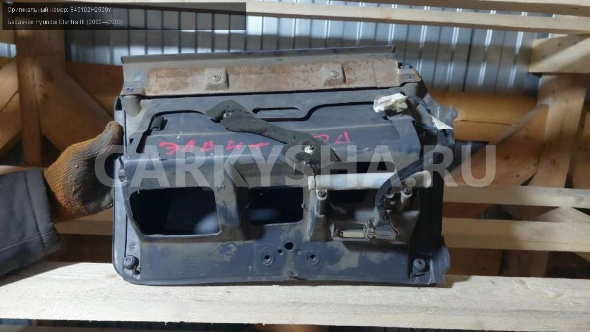 Hyundai Elantra xd, бардачок.\nАртикул: 3885\n\nОриг. номер: 845102H2509Y\nПроизводитель: Hyundai-KIA\nПримечание:Хендай Элантра XD, бардачок, б/у. \n\nМарка: Hyundai\nМодель: Elantra III (2000—2003)\nГод выпуска: 2003\nКузов тип: Седан\nДвигатель номер: G4GC\nМодель двигателя: инжектор\nОбъем: 2.0\nТопливо: Бензин\nКоробка: Автомат\nЦвет: Серебро\nСовместимости: Hyundai Elantra III (2000—2003) 2.0 AT (139 л.с.)\nСовместимость:
