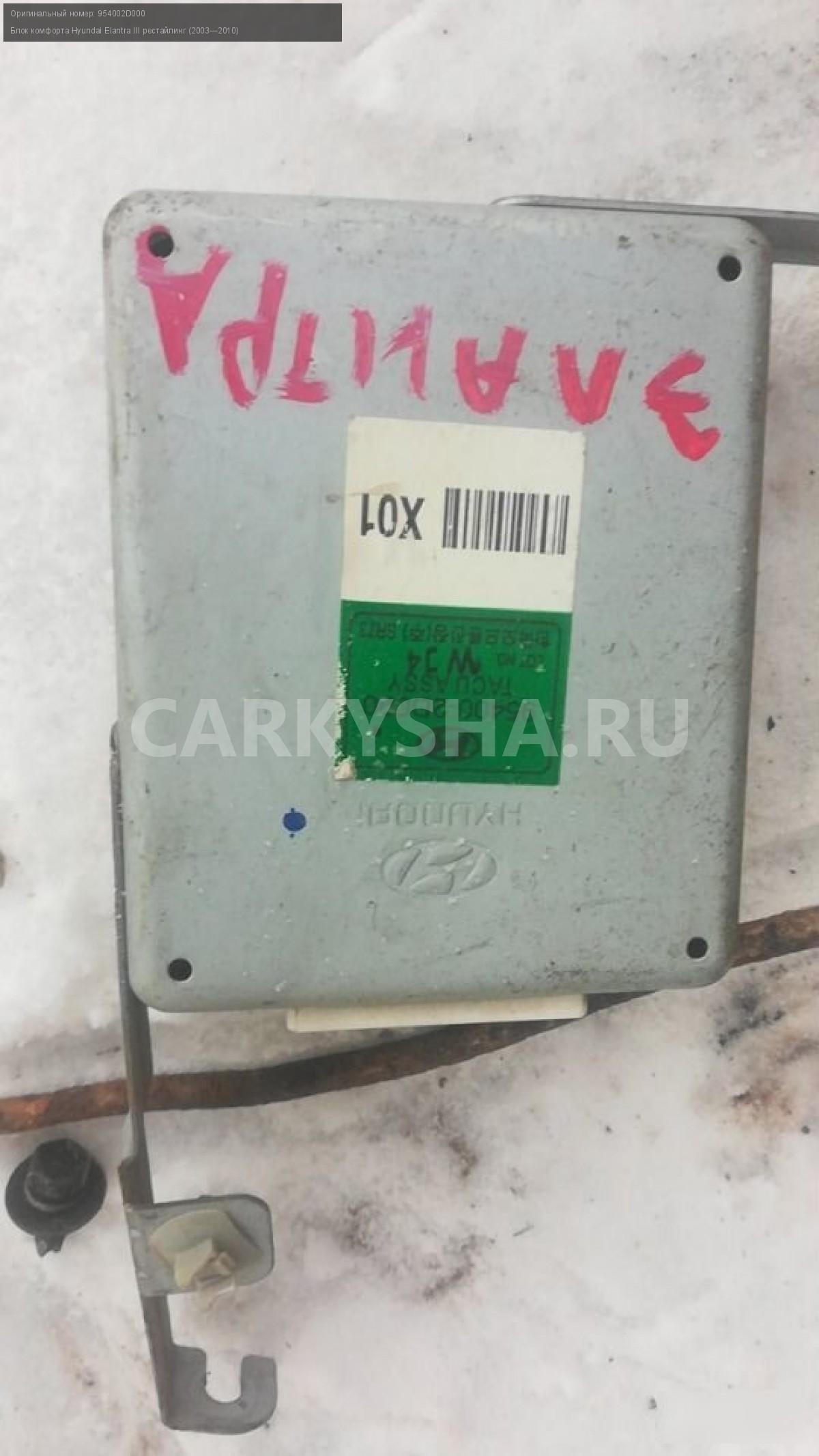 Hyundai elantra xd блок комфорта\nАртикул: 734\n\nОриг. номер: 954002D000\nПримечание:Hyundai elantra xd блок комфорта.НАЛИЧИЕ ЗАПЧАСТИ УТОЧНИТЕ ПО ТЕЛЕФОНУ ИЛИ В СООБЩЕНИЯХ,б/у, а так же множество авто в разборе, работаем с регионами отправка тк, выкуп авто после дтп по всей России, отправка тк осуществляется после 100% оплаты, наложенным платежом не работаем, стоимость доставки не рассчитываем\n\nМарка: Hyundai\nМодель: Elantra III рестайлинг (2003—2010)\nКузов тип: Седан\nОбъем: 2.0\nТопливо: Бензин\nКоробка: Автомат\nСовместимости: Hyundai Elantra III рестайлинг (2003—2010) 2.0 AT (143 л.с.)\nСовместимость: