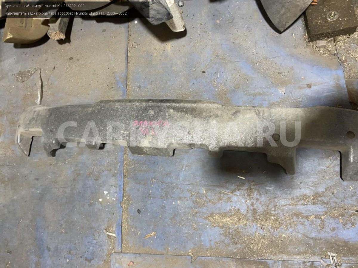 Hyundai Elantra III, наполнитель заднего бампера.\nАртикул: 4198\n\nОриг. номер: Hyundai-Kia 866202H000\nПроизводитель: Hyundai-KIA\nПримечание:Хендай Элантра 3, наполнитель заднего бампера, бу. \n\nМарка: Hyundai\nМодель: Elantra III (2000—2003)\nГод выпуска: 2003\nКузов тип: Седан\nДвигатель номер: G4GC\nМодель двигателя: инжектор\nОбъем: 2.0\nТопливо: Бензин\nКоробка: Автомат\nЦвет: Серебро\nПеред/Зад: Зад\nСовместимости: Hyundai Elantra III (2000—2003) 2.0 AT (139 л.с.)\nСовместимость:
