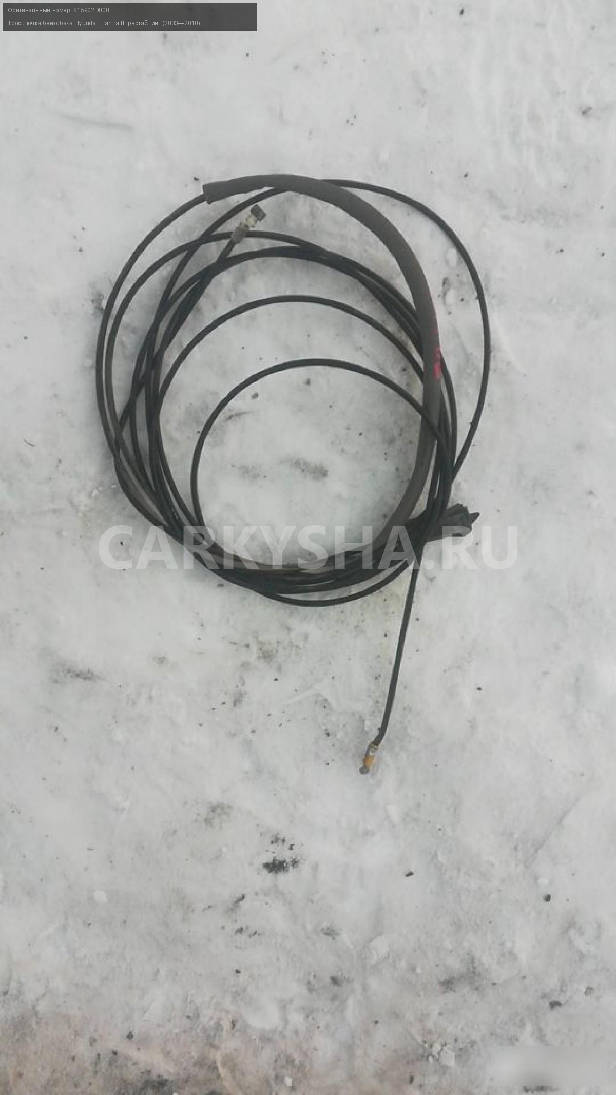 Hyundai elantra xd тросик бензобака\nАртикул: 120\n\nОриг. номер: 815902D000\nПроизводитель: Hyundai-KIA\nПримечание:Hyundai elantra xd тросик бензобака и крышки багажика .НАЛИЧИЕ ЗАПЧАСТИ УТОЧНИТЕ ПО ТЕЛЕФОНУ ИЛИ В СООБЩЕНИЯХ,б/у, а так же множество авто в разборе, работаем с регионами отправка тк, выкуп авто после дтп по всей России, отправка тк осуществляется после 100% оплаты, наложенным платежом не работаем, стоимость доставки не рассчитываем\n\nМарка: Hyundai\nМодель: Elantra III рестайлинг (2003—2010)\nКузов тип: Седан\nОбъем: 1.6\nТопливо: Бензин\nКоробка: Механика\nСовместимости: Hyundai Elantra III рестайлинг (2003—2010) 1.6 MT (105 л.с.)\nСовместимость: