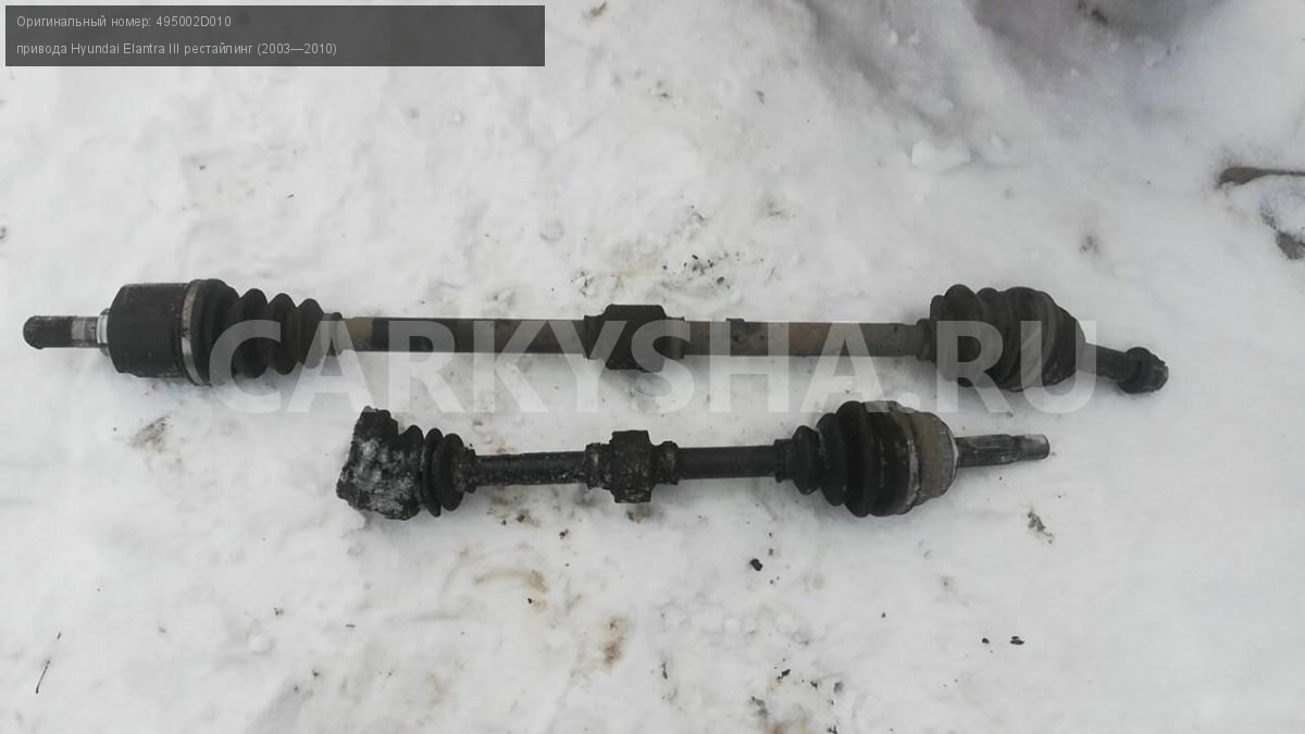 Hyundai elantra xd 2.0 АКПП привода\nАртикул: 438\n\nОриг. номер: 495002D010\nПроизводитель: Hyundai-KIA\nПримечание:Hyundai elantra xd 2.0 АКПП привода,цена за один.НАЛИЧИЕ ЗАПЧАСТИ УТОЧНИТЕ ПО ТЕЛЕФОНУ ИЛИ В СООБЩЕНИЯХ,б/у, а так же множество авто в разборе, работаем с регионами отправка тк, выкуп авто после дтп по всей России, отправка тк осуществляется после 100% оплаты, наложенным платежом не работаем, стоимость доставки не рассчитываем\n\nМарка: Hyundai\nМодель: Elantra III рестайлинг (2003—2010)\nКузов тип: Седан\nОбъем: 1.6\nТопливо: Бензин\nКоробка: Механика\nСовместимости: Hyundai Elantra III рестайлинг (2003—2010) 1.6 MT (105 л.с.)\nСовместимость: