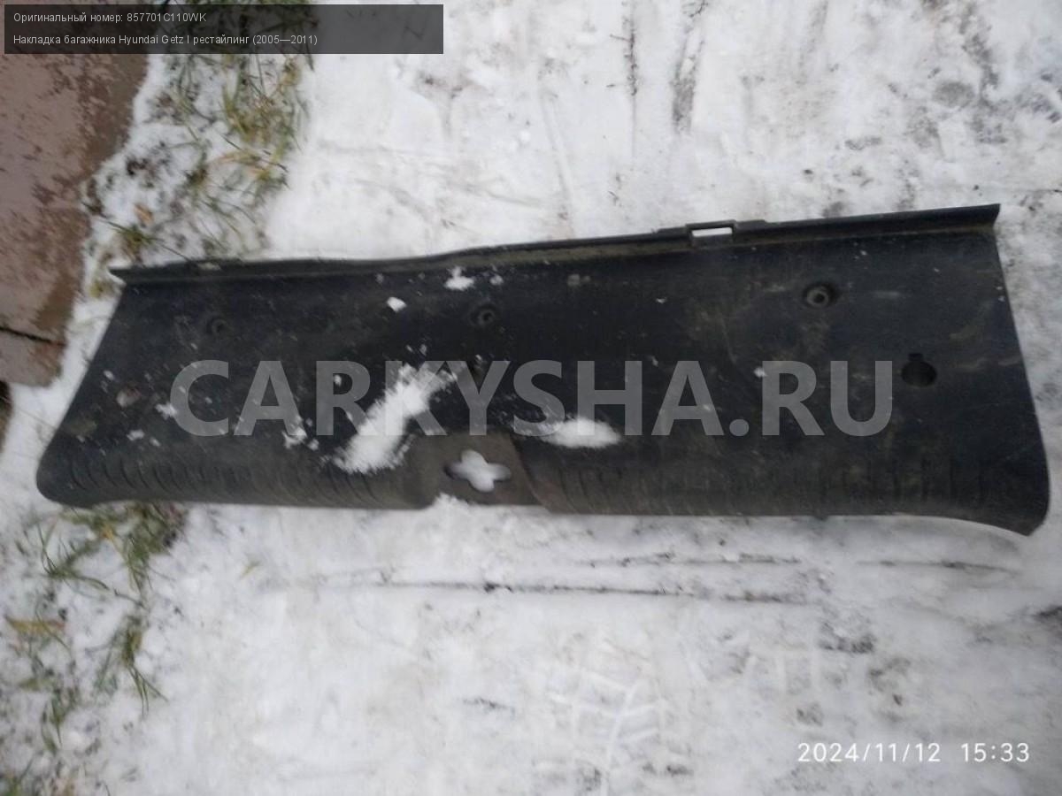 Hyundai Getz I рест, замковая панель багажника.\nАртикул: 6268\n\nОриг. номер: 857701C110WK\nПроизводитель: Hyundai-KIA\nПримечание:Хендай Гетц 1 рестайлинг, замковая панель багажника, (накладка багажника) , б/у. \n\nМарка: Hyundai\nМодель: Getz I рестайлинг (2005—2011)\nГод выпуска: 2007\nКузов тип: Хетчбэк\nДвигатель номер: G4EE\nМодель двигателя: инжектор\nОбъем: 1.4\nТопливо: Бензин\nКоробка: Механика\nЦвет: Красный\nСовместимости: Hyundai Getz I рестайлинг (2005—2011) 1.4 MT (97 л.с.)\nСовместимость: