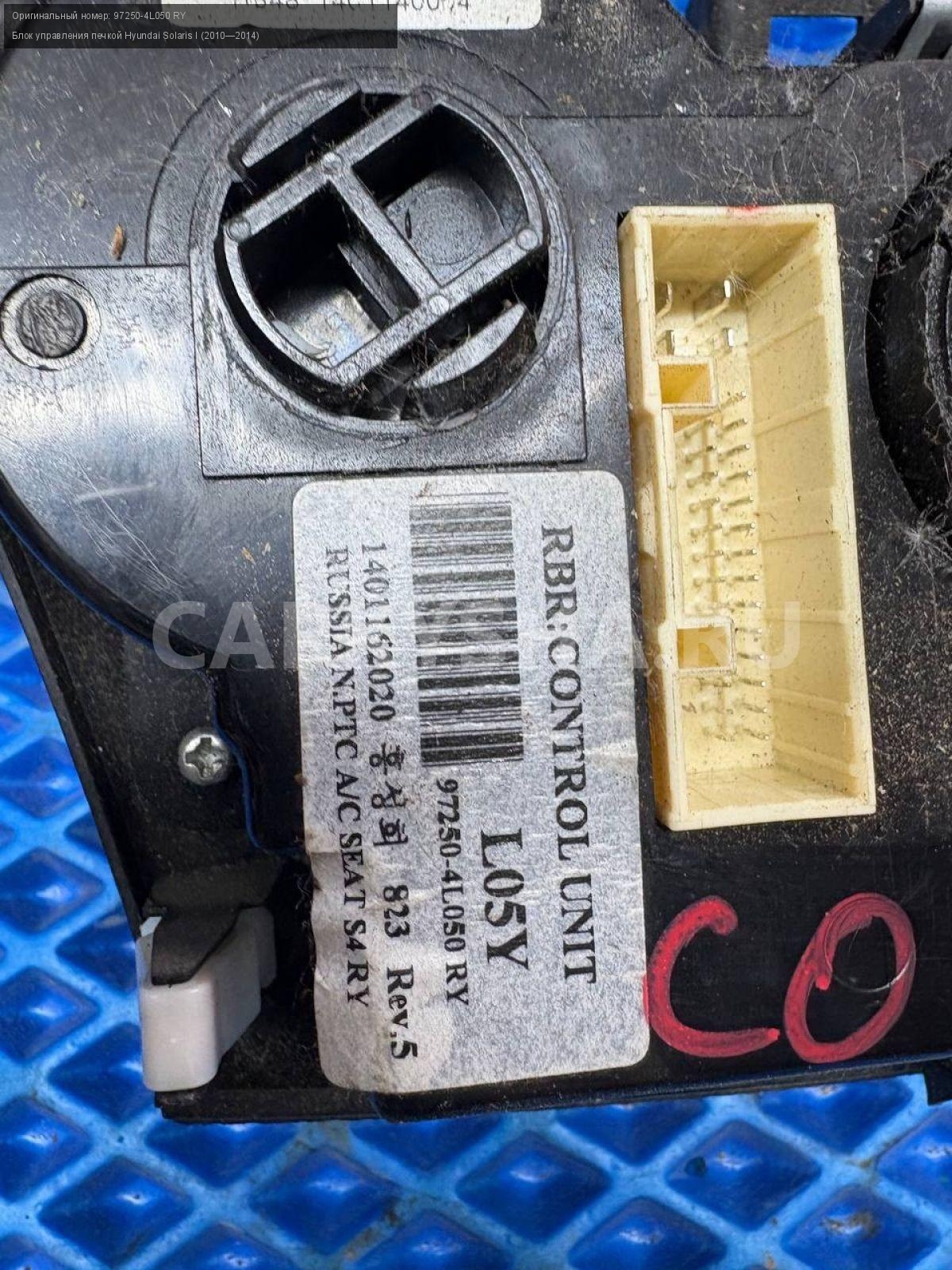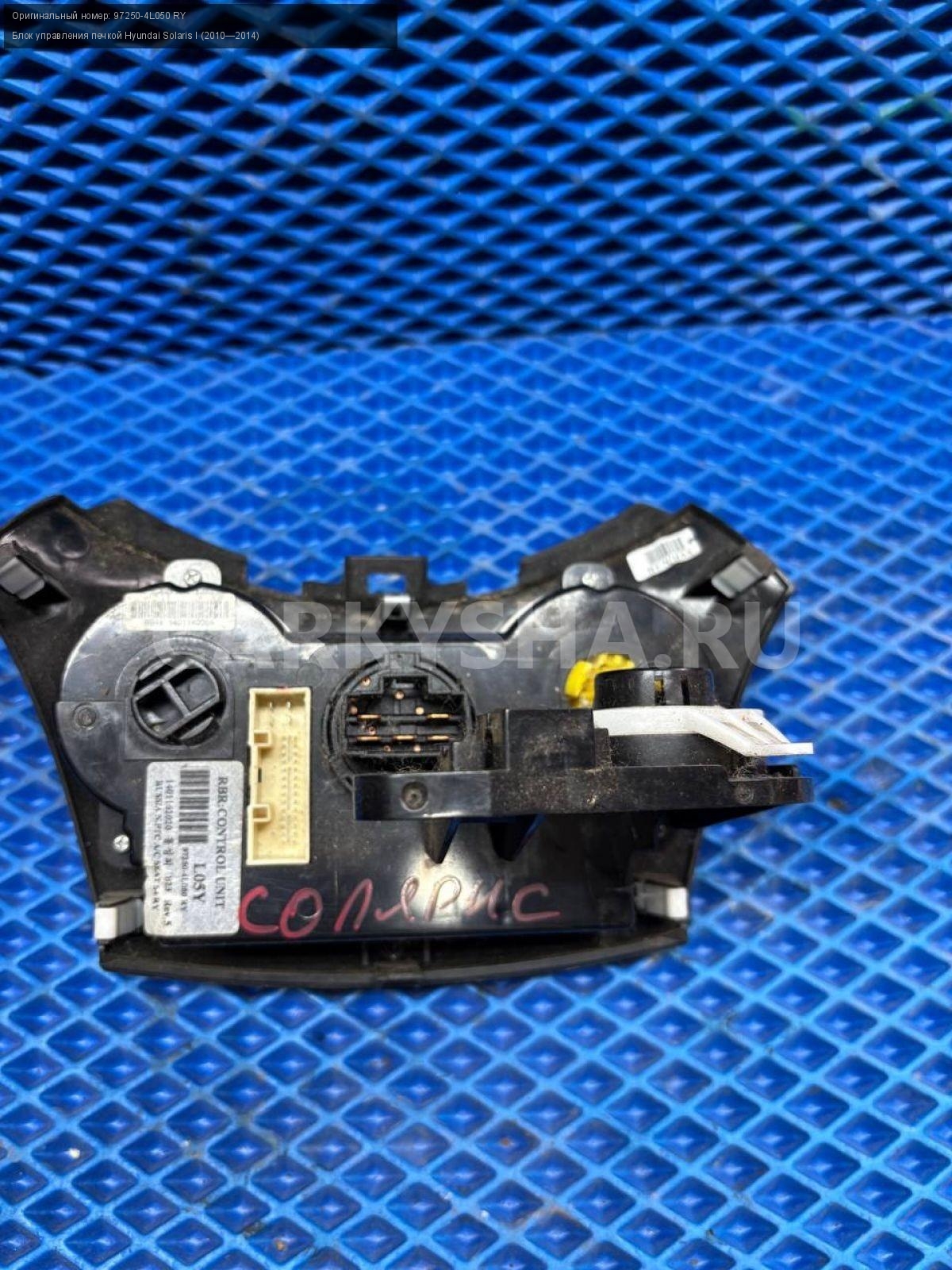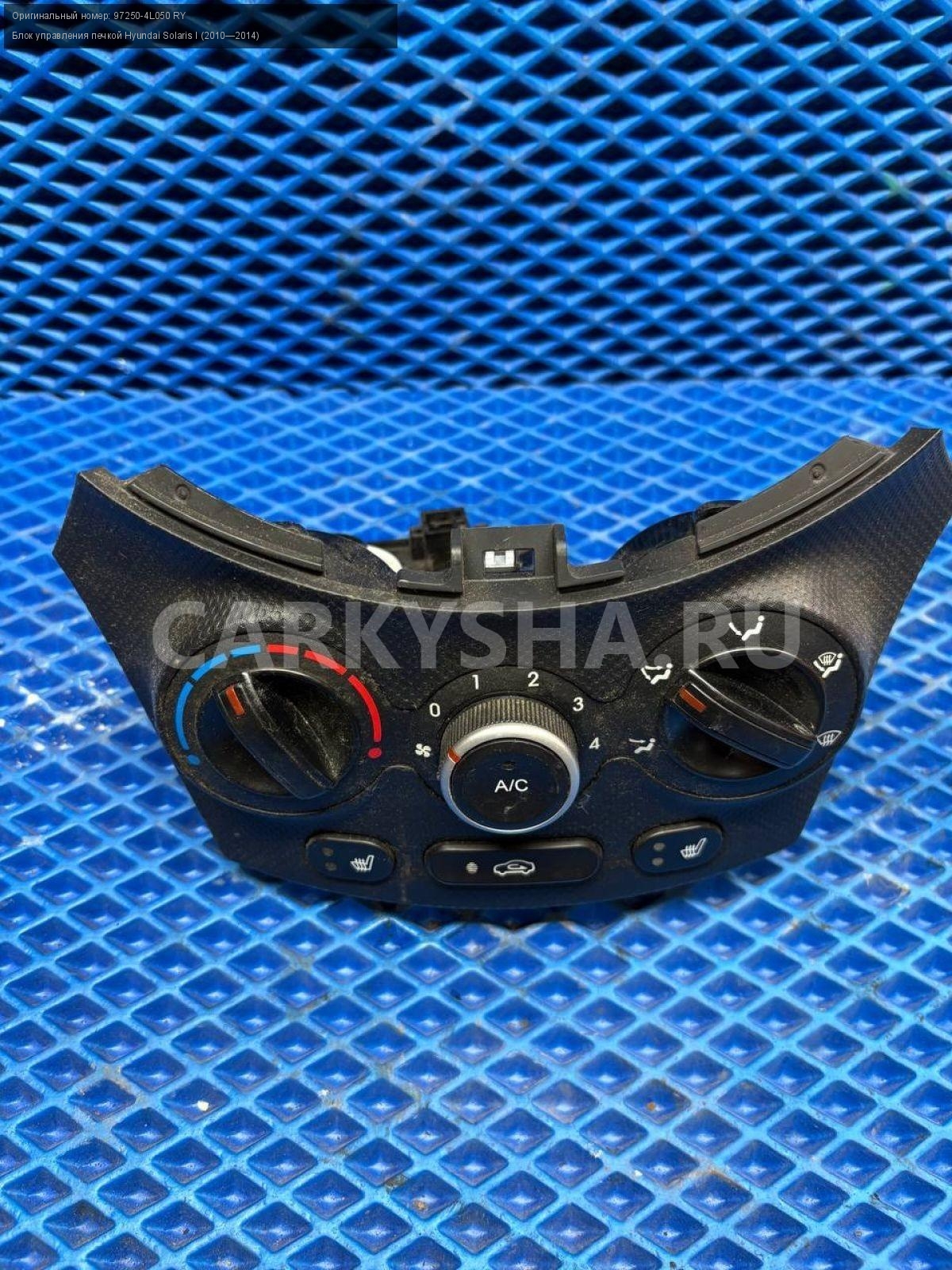 Hyundai Solaris I, блок управления печкой с конд.\nАртикул: 8637\n\nОриг. номер: 97250-4L050 RY\nПроизводитель: Hyundai-KIA\nПримечание:Хендай Солярис 1, блок управления печкой с кондиционером, б/у. \n\nМарка: Hyundai\nМодель: Solaris I (2010—2014)\nГод выпуска: 2014\nКузов тип: Седан\nДвигатель номер: G4FC\nМодель двигателя: инжектор\nОбъем: 1.6\nТопливо: Бензин\nКоробка: Механика\nЦвет: Черный\nСовместимости: Hyundai Solaris I (2010—2014) 1.6 MT (123 л.с.)\nСовместимость: