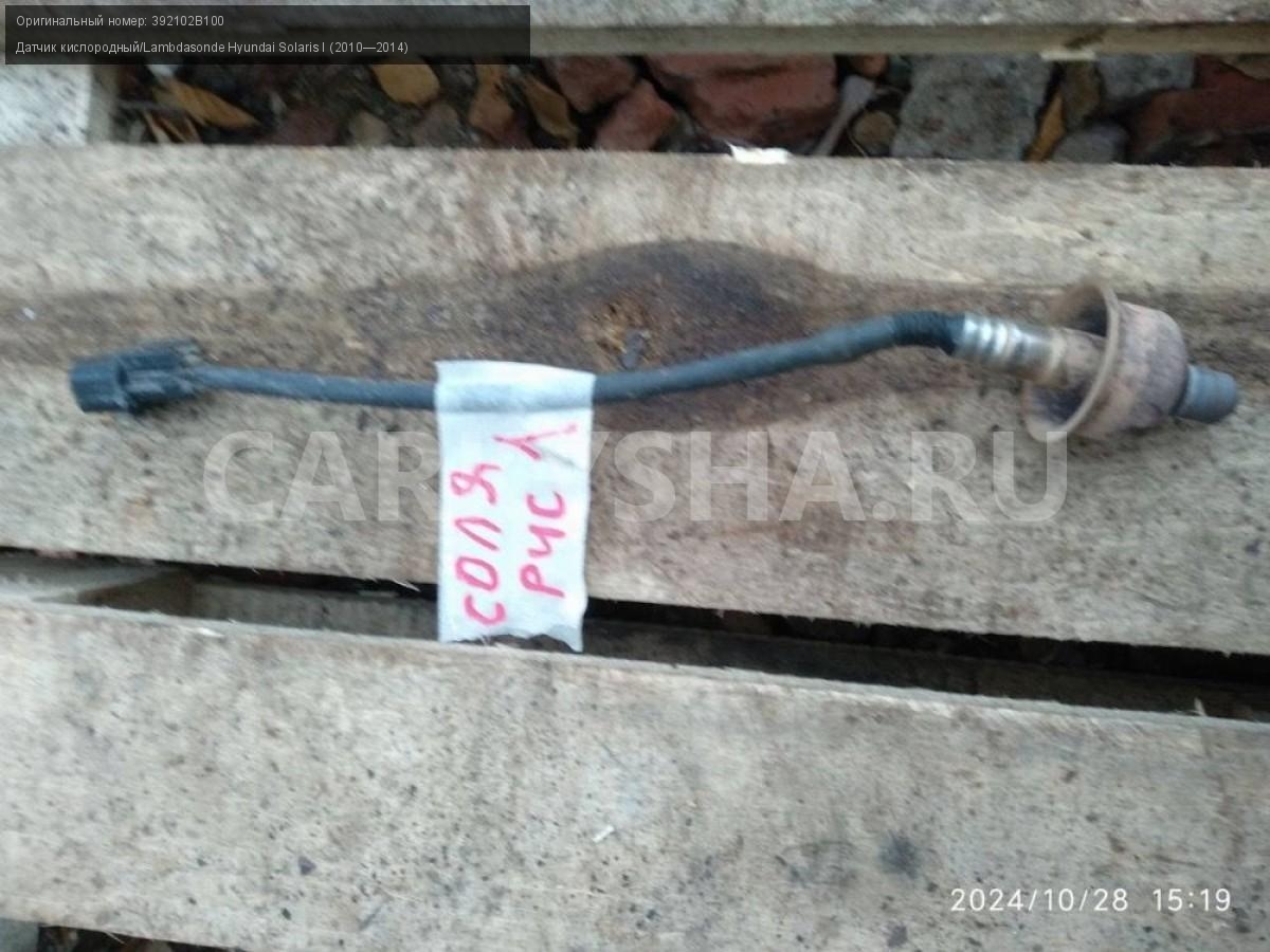 Hyundai Solaris I, датчик кислорода первый.\nАртикул: 6118\n\nОриг. номер: 392102B100\nПроизводитель: Hyundai-KIA\nПримечание:Хендай Солярис 1, датчик кислорода первый, б/у. \n\nМарка: Hyundai\nМодель: Solaris I (2010—2014)\nГод выпуска: 2012\nКузов тип: Седан\nДвигатель номер: G4FA\nМодель двигателя: инжектор\nОбъем: 1.4\nТопливо: Бензин\nКоробка: Механика\nЦвет: Черный\nСовместимости: Hyundai Solaris I (2010—2014) 1.4 MT (107 л.с.)\nСовместимость: