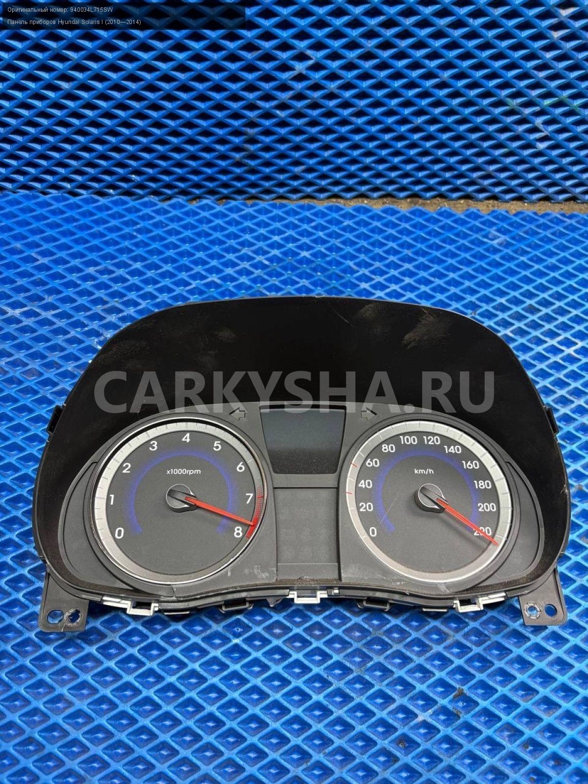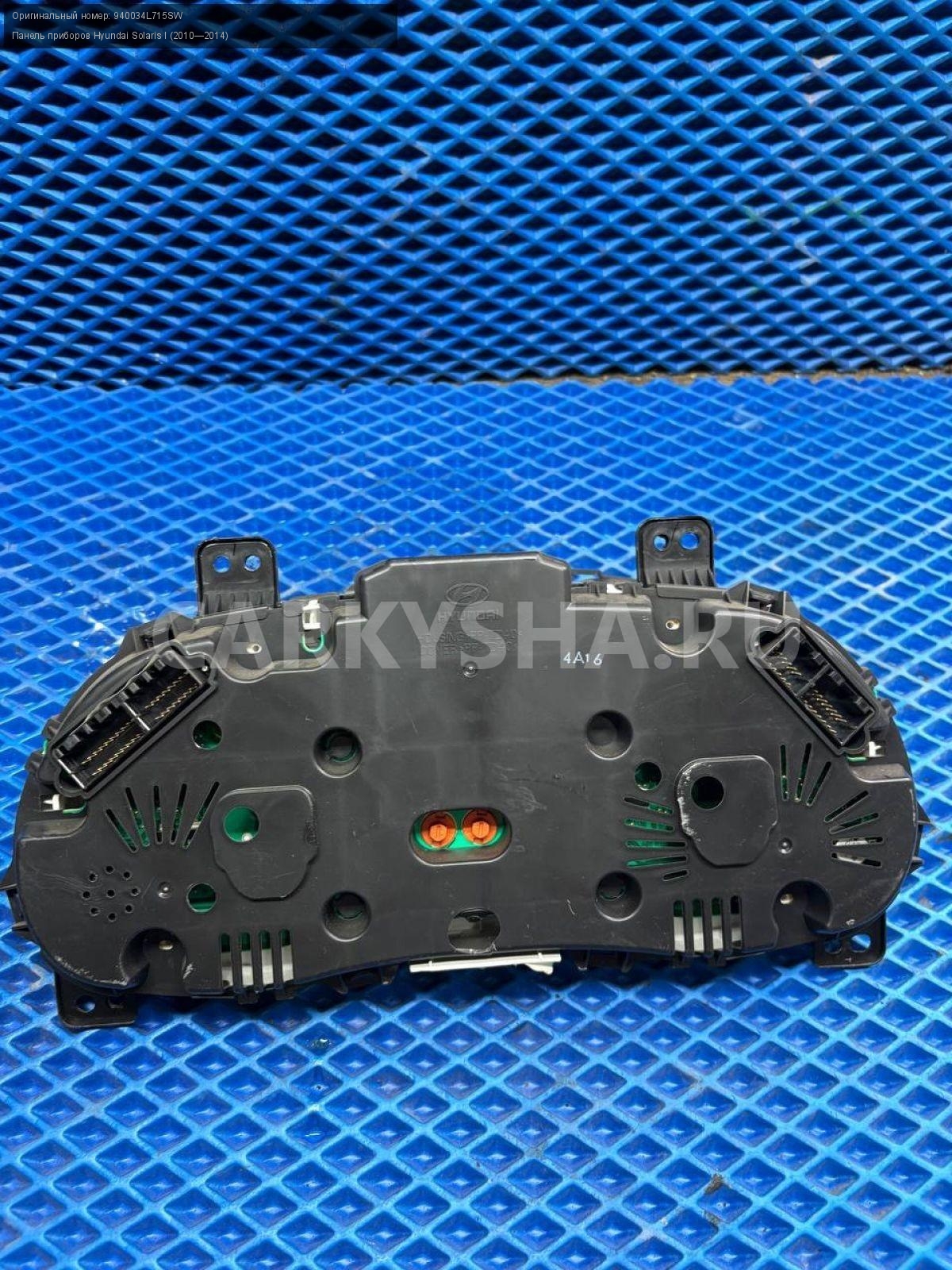 Hyundai Solaris I, панель приборов.\nАртикул: 8641\n\nОриг. номер: 940034L715SW\nПроизводитель: Hyundai-KIA\nПримечание:Хендай Солярис 1, щиток приборов, панель приборов, под МКПП, нету стекла, б/у. \n\nМарка: Hyundai\nМодель: Solaris I (2010—2014)\nГод выпуска: 2014\nКузов тип: Седан\nДвигатель номер: G4FC\nМодель двигателя: инжектор\nОбъем: 1.6\nТопливо: Бензин\nКоробка: Механика\nЦвет: Черный\nСовместимости: Hyundai Solaris I (2010—2014) 1.6 MT (123 л.с.)\nСовместимость: