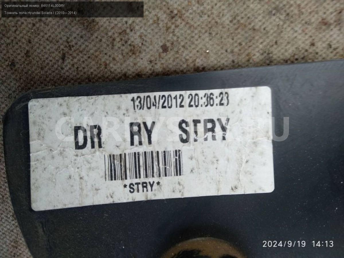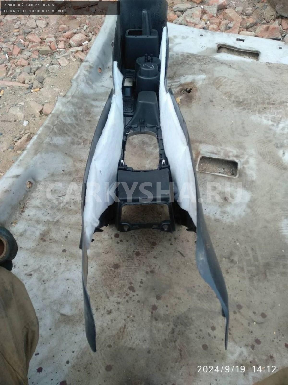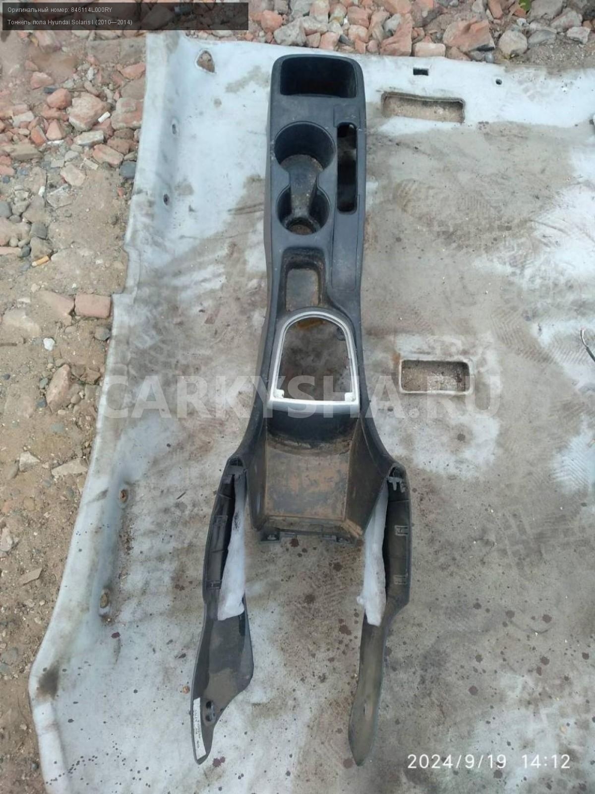 Hyundai Solaris I дорест., тоннель пола.\nАртикул: 5736\n\nОриг. номер: 846114L000RY\nПроизводитель: Hyundai-KIA\nПримечание:Хендай Солярис 1 до рестайлинг, тоннель пола ( консоль центральная) , б/у. \n\nМарка: Hyundai\nМодель: Solaris I (2010—2014)\nГод выпуска: 2012\nКузов тип: Седан\nДвигатель номер: G4FA\nМодель двигателя: инжектор\nОбъем: 1.4\nТопливо: Бензин\nКоробка: Механика\nЦвет: Черный\nСовместимости: Hyundai Solaris I (2010—2014) 1.4 MT (107 л.с.)\nСовместимость: