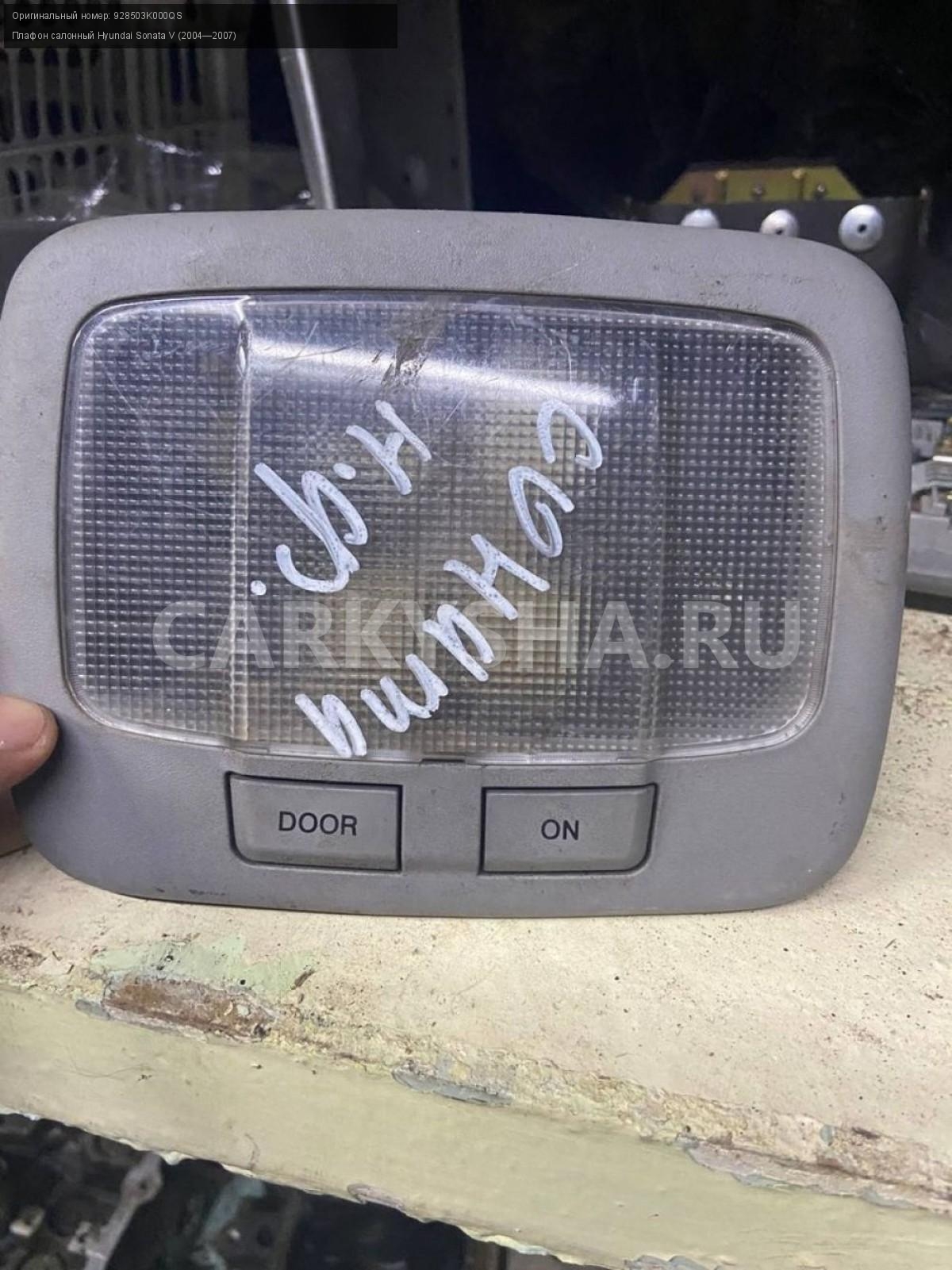 Hyundai Sonata NF, плафон салона\nАртикул: 2869\n\nОриг. номер: 928503K000QS\nПроизводитель: Hyundai-KIA\nПримечание:Хендай Соната НФ, плафон освещения, б/у\n\nМарка: Hyundai\nМодель: Sonata V (2004—2007)\nСовместимости: Hyundai Sonata V (2004—2007)\nСовместимость: