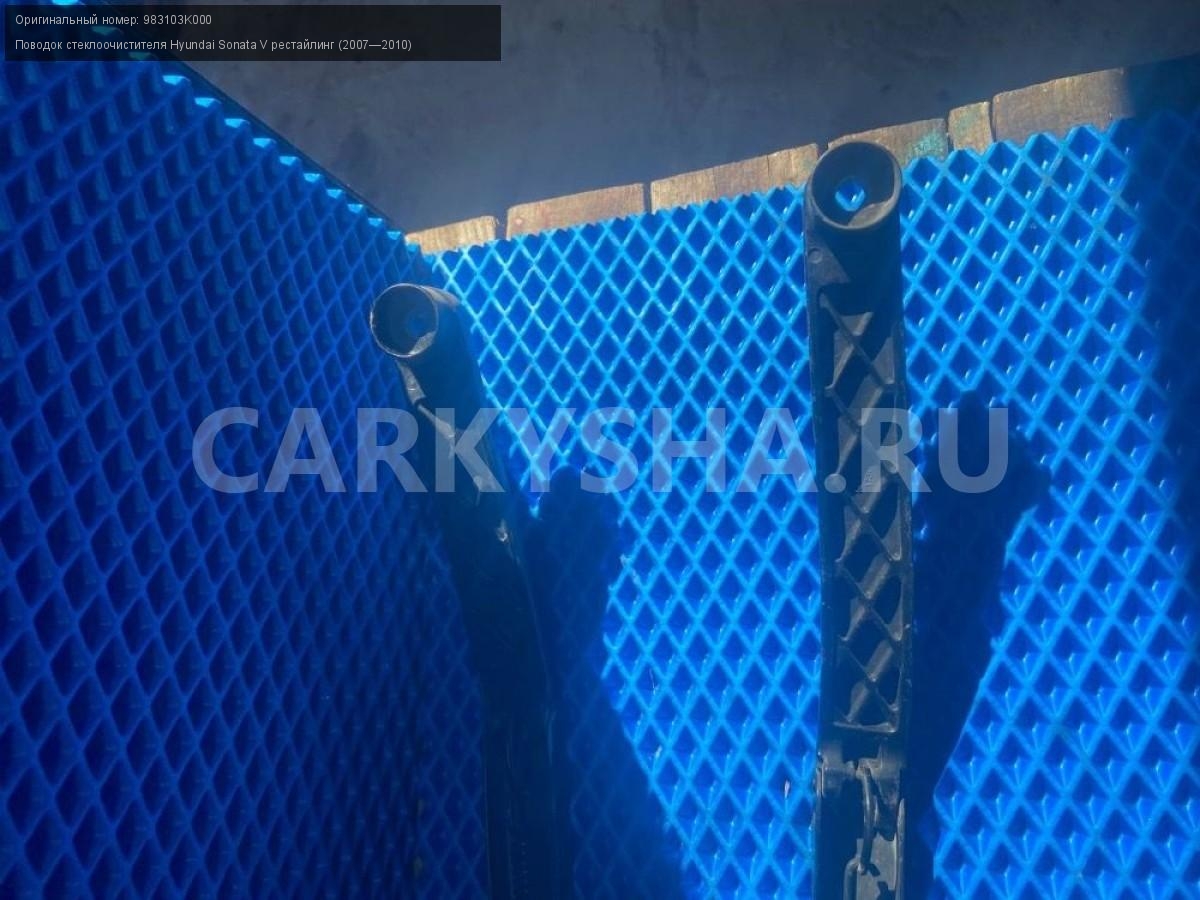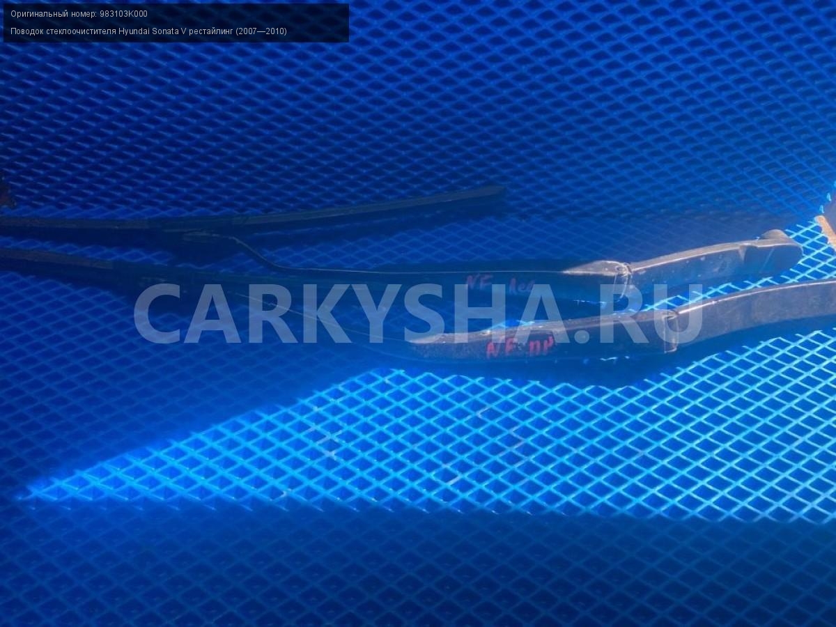 Hyundai Sonata NF, поводки дворников, пара.\nАртикул: 7826\n\nОриг. номер: 983103K000\nПроизводитель: Hyundai-KIA\nПримечание:Хендай Соната NF, поводки дворников, цена за пару, б/у. \n\nМарка: Hyundai\nМодель: Sonata V рестайлинг (2007—2010)\nГод выпуска: 2006\nКузов номер: NF\nКузов тип: Седан\nДвигатель номер: G4KA\nМодель двигателя: инжектор\nОбъем: 2.0\nТопливо: Бензин\nКоробка: Механика\nЦвет: Бордовый\nСовместимости: Hyundai Sonata V рестайлинг (2007—2010) 2.0 MT (152 л.с.)\nСовместимость:
