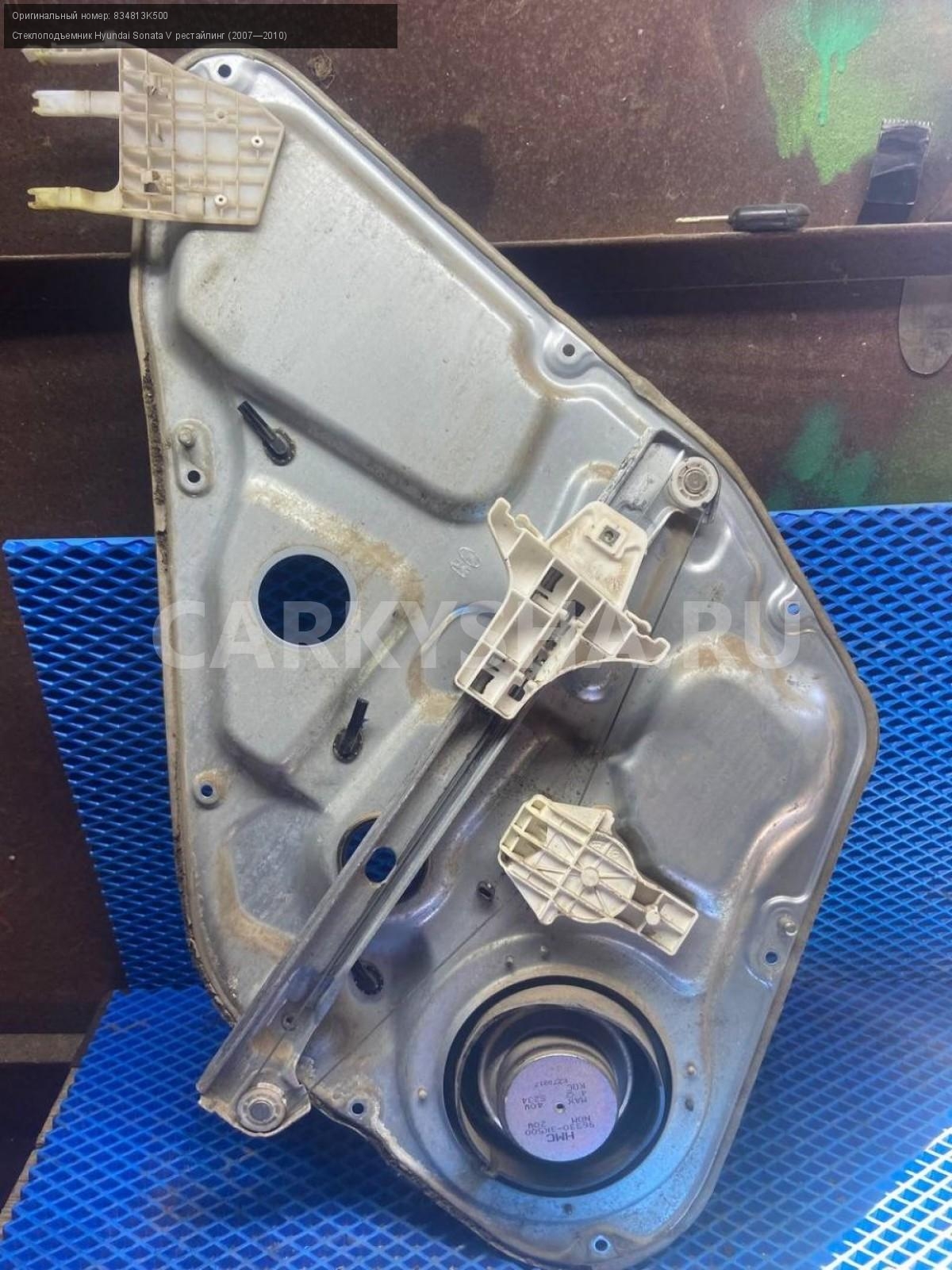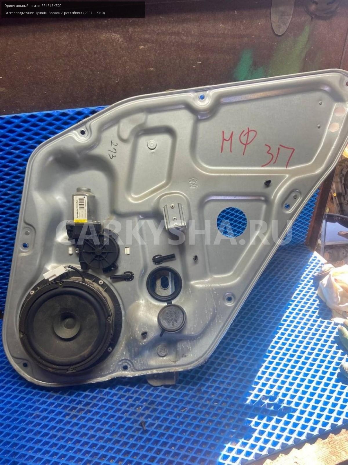 Hyundai Sonata NF, стеклоподъемник задний правый\nАртикул: 8174\n\nОриг. номер: 834813K500\nПроизводитель: Hyundai-KIA\nПримечание:Хендай Соната NF , стеклоподъемник задний правый, б/у. \n\nМарка: Hyundai\nМодель: Sonata V рестайлинг (2007—2010)\nГод выпуска: 2006\nКузов номер: NF\nКузов тип: Седан\nДвигатель номер: G4KA\nМодель двигателя: инжектор\nОбъем: 2.0\nТопливо: Бензин\nКоробка: Механика\nЦвет: Бордовый\nПраво/Лево: Право\nПеред/Зад: Зад\nСовместимости: Hyundai Sonata V рестайлинг (2007—2010) 2.0 MT (152 л.с.)\nСовместимость: