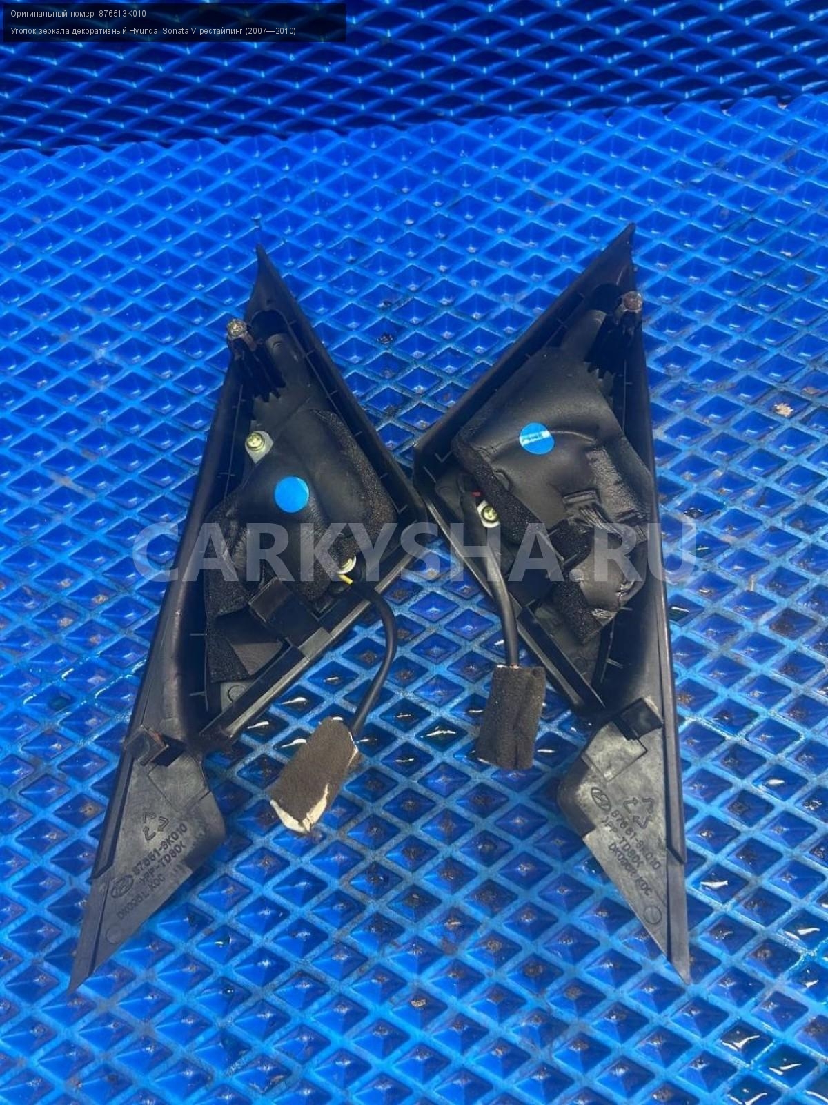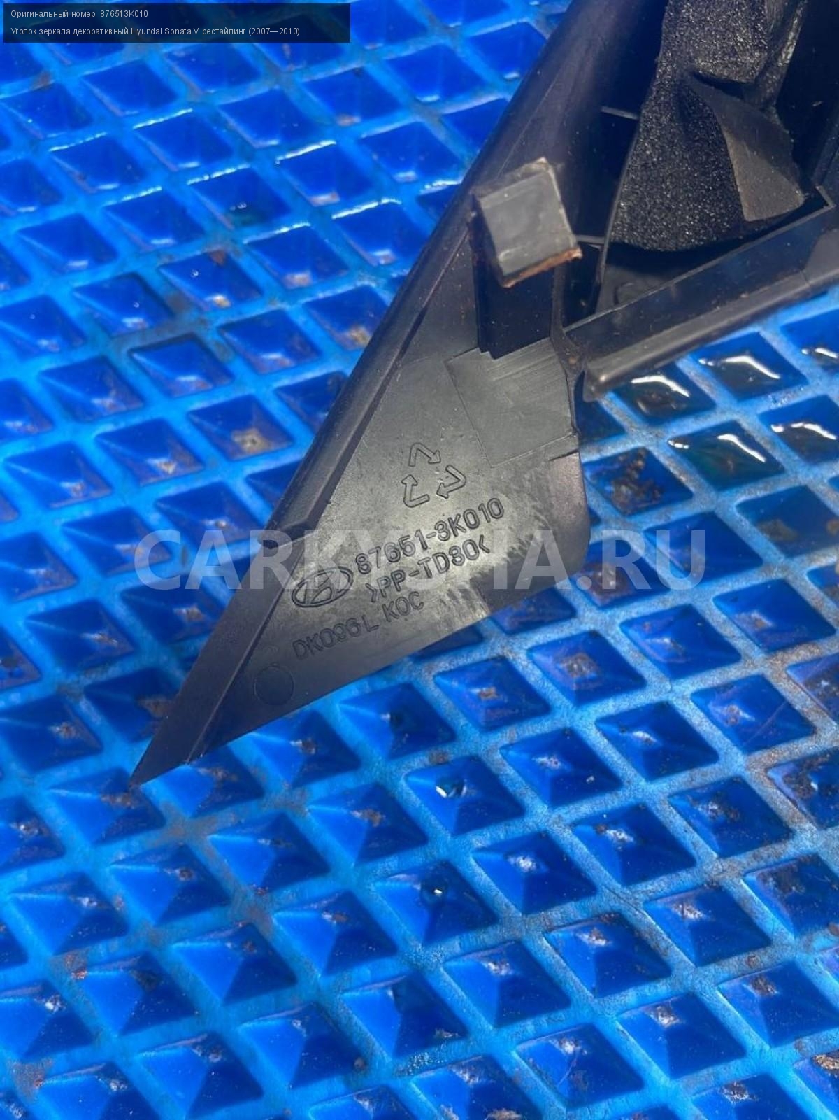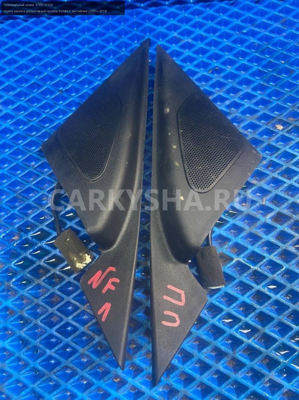 Hyundai Sonata NF, уголки зеркал внутренние.\nАртикул: 7810\n\nОриг. номер: 876513K010\nПроизводитель: Hyundai-KIA\nПримечание:Хендай Соната NF, уголки зеркал внутренние , цена за пару , б/у. \n\nМарка: Hyundai\nМодель: Sonata V рестайлинг (2007—2010)\nГод выпуска: 2006\nКузов номер: NF\nКузов тип: Седан\nДвигатель номер: G4KA\nМодель двигателя: инжектор\nОбъем: 2.0\nТопливо: Бензин\nКоробка: Механика\nЦвет: Бордовый\nПраво/Лево: Право/Лево\nСовместимости: Hyundai Sonata V рестайлинг (2007—2010) 2.0 MT (152 л.с.)\nСовместимость: