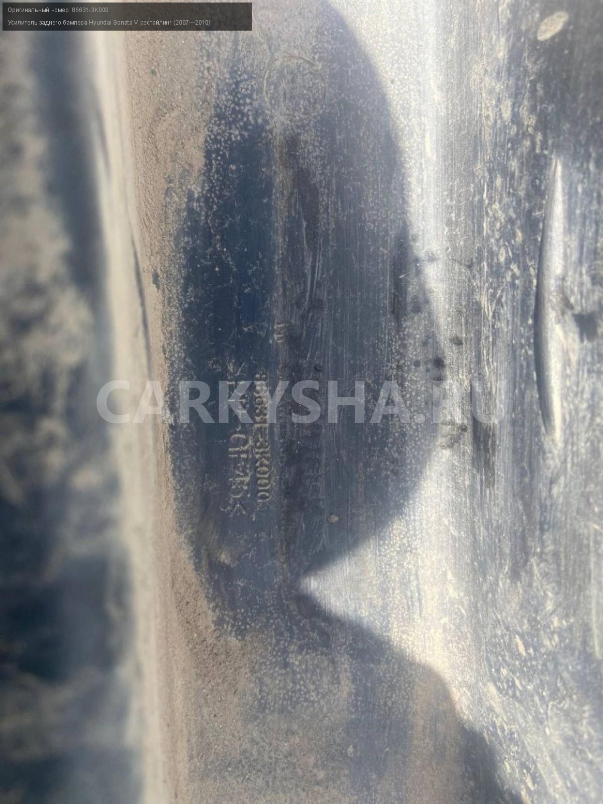 Hyundai Sonata NF, усилитель заднего бампера.\nАртикул: 7733\n\nОриг. номер: 86631-3K000\nПроизводитель: Hyundai-KIA\nПримечание:Хендай Соната NF, усилитель заднего бампера, б/у. \n\nМарка: Hyundai\nМодель: Sonata V рестайлинг (2007—2010)\nГод выпуска: 2006\nКузов номер: NF\nКузов тип: Седан\nДвигатель номер: G4KA\nМодель двигателя: инжектор\nОбъем: 2.0\nТопливо: Бензин\nКоробка: Механика\nЦвет: Бордовый\nСовместимости: Hyundai Sonata V рестайлинг (2007—2010) 2.0 MT (152 л.с.)\nСовместимость: