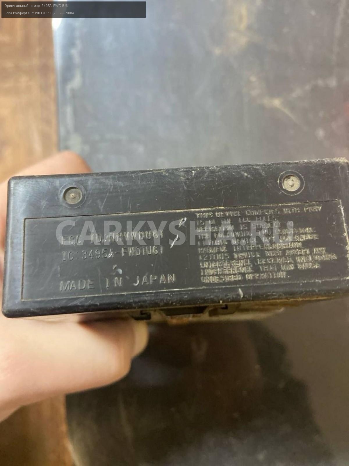 Infiniti FX35 S50, Блок комфорта.\nАртикул: 7063\n\nОриг. номер: 3495A-FWD1U61\nПроизводитель: INFINITI\nПримечание:Инфинити FX35 S50, блок комфорта, б/у. \n\nМарка: Infiniti\nМодель: FX35 I (2002—2006)\nСовместимости: Infiniti FX35 I (2002—2006)\nСовместимость: