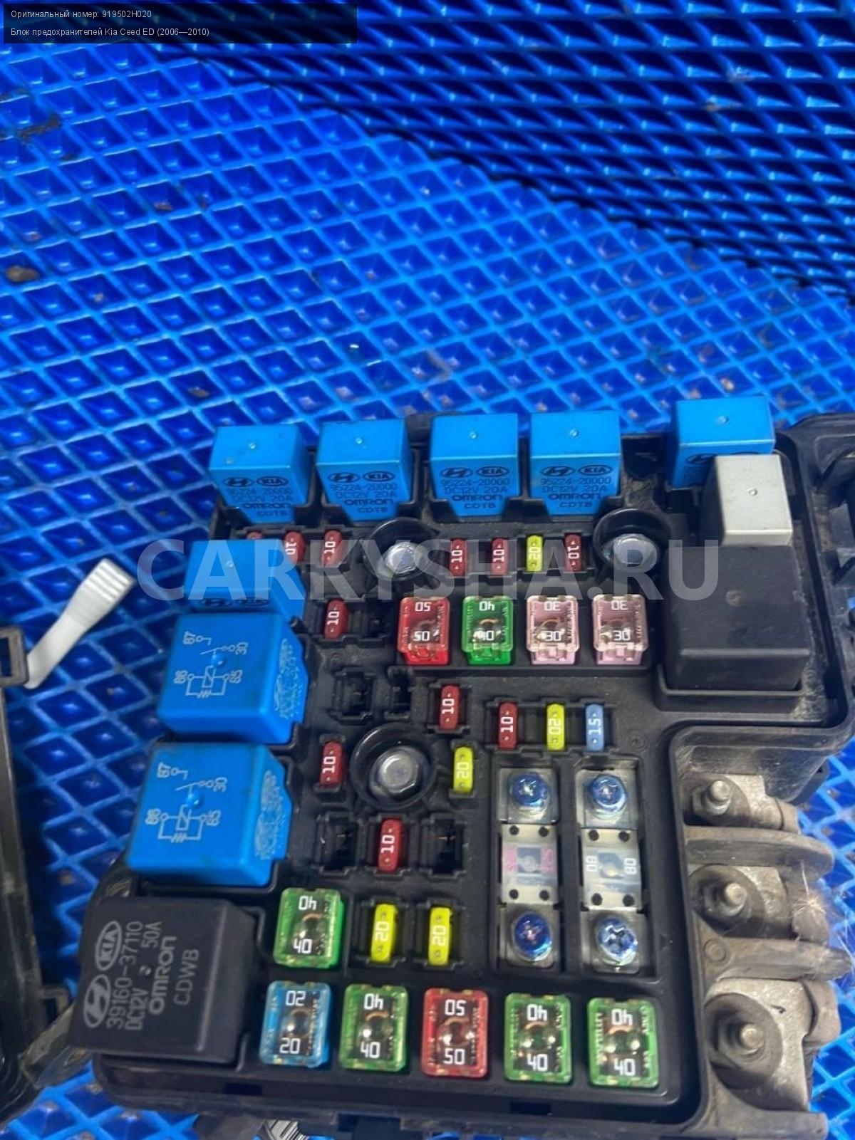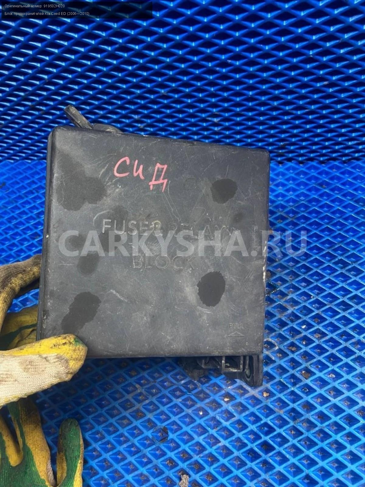 Kia Ceed ED, Блок предохранителей подкапотный.\nАртикул: 8045\n\nОриг. номер: 919502H020\nПроизводитель: Hyundai-KIA\nПримечание:Киа Сид ED, блок предохранителей подкапотный, б/у. \n\nМарка: Kia\nМодель: Ceed ED (2006—2010)\nГод выпуска: 2007\nКузов тип: Хетчбэк\nДвигатель номер: G4FC\nМодель двигателя: инжектор\nОбъем: 1.6\nТопливо: Бензин\nКоробка: Автомат\nЦвет: Черный\nСовместимости: Kia Ceed ED (2006—2010) 1.6 AT (122 л.с.)\nСовместимость: