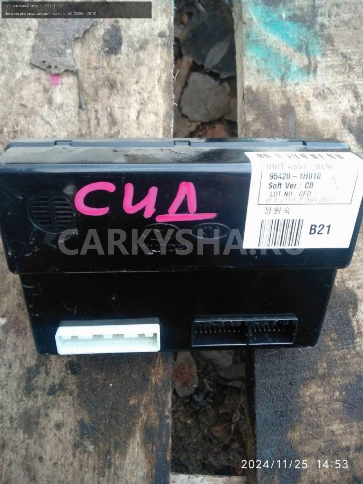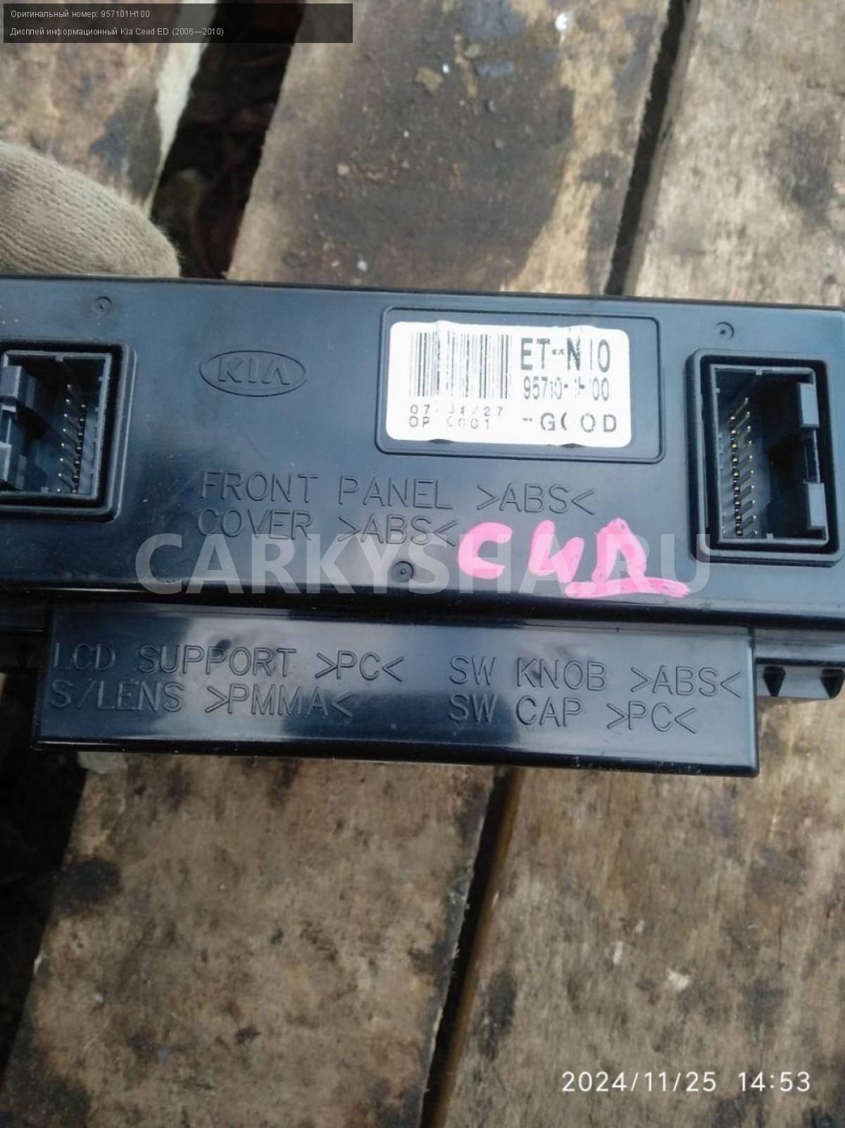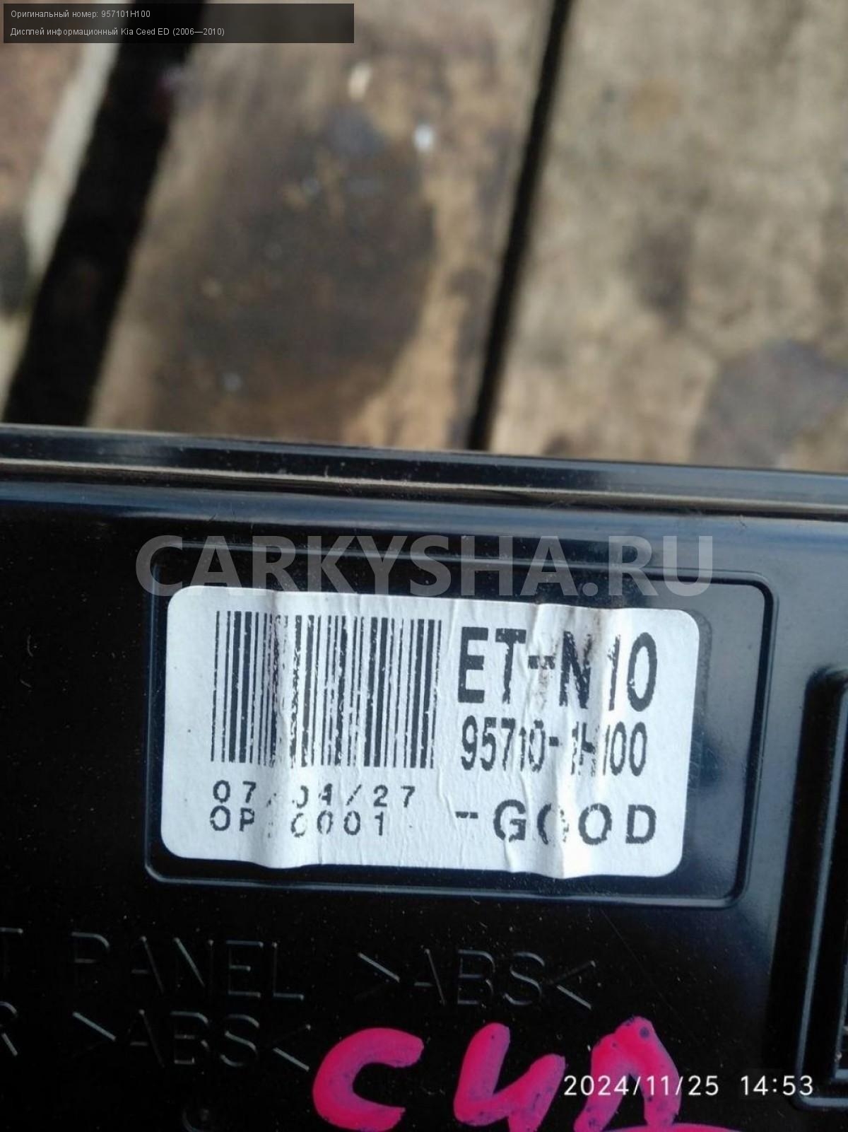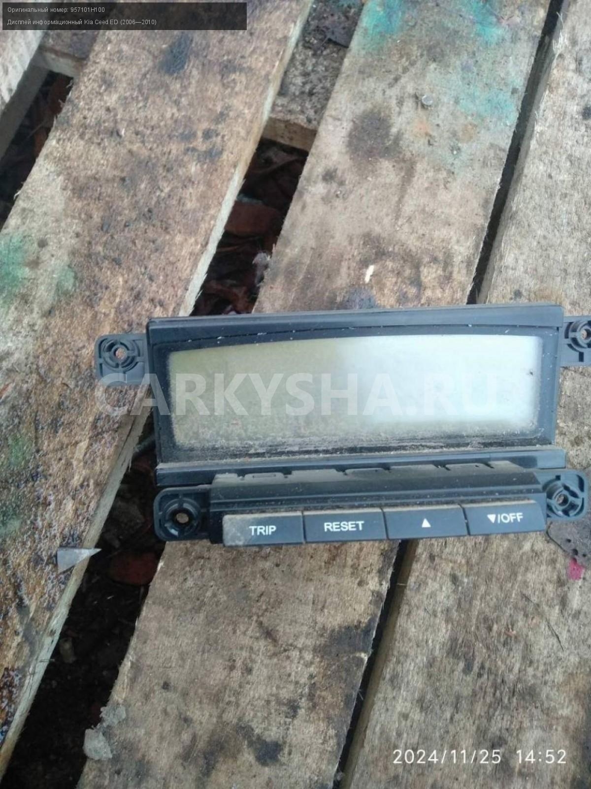 Kia Ceed ED, дисплей информационный.\nАртикул: 6463\n\nОриг. номер: 957101H100\nПроизводитель: Hyundai-KIA\nПримечание:Киа Сид 1ED, дисплей информационный, б/у. \n\nМарка: Kia\nМодель: Ceed ED (2006—2010)\nГод выпуска: 2007\nКузов тип: Хетчбэк\nДвигатель номер: G4FC\nМодель двигателя: инжектор\nОбъем: 1.6\nТопливо: Бензин\nКоробка: Автомат\nЦвет: Черный\nСовместимости: Kia Ceed ED (2006—2010) 1.6 AT (122 л.с.)\nСовместимость: