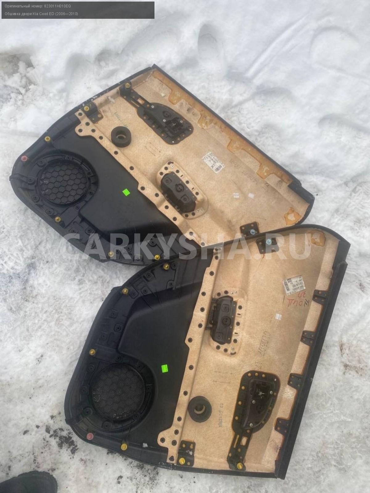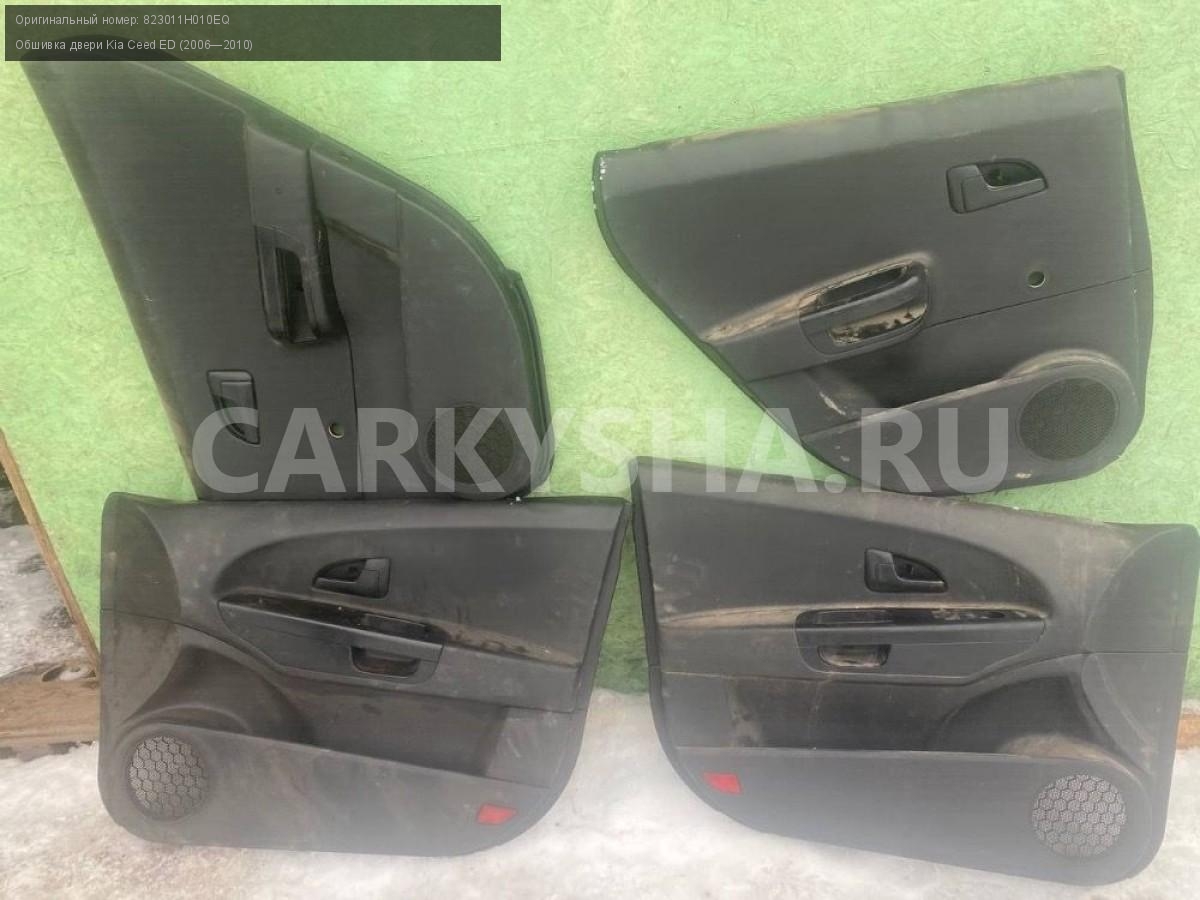 Kia Ceed ED, обшивки дверей комплект.\nАртикул: 6766\n\nОриг. номер: 823011H010EQ\nПроизводитель: Hyundai-KIA\nПримечание:Киа Сид 1 ED, обшивки дверей, цена за комплект, б/у. \n\nМарка: Kia\nМодель: Ceed ED (2006—2010)\nГод выпуска: 2007\nКузов тип: Хетчбэк\nДвигатель номер: G4FC\nМодель двигателя: инжектор\nОбъем: 1.6\nТопливо: Бензин\nКоробка: Автомат\nЦвет: Черный\nПраво/Лево: Право/Лево\nПеред/Зад: Перед/Зад\nСовместимости: Kia Ceed ED (2006—2010) 1.6 AT (122 л.с.)\nСовместимость: