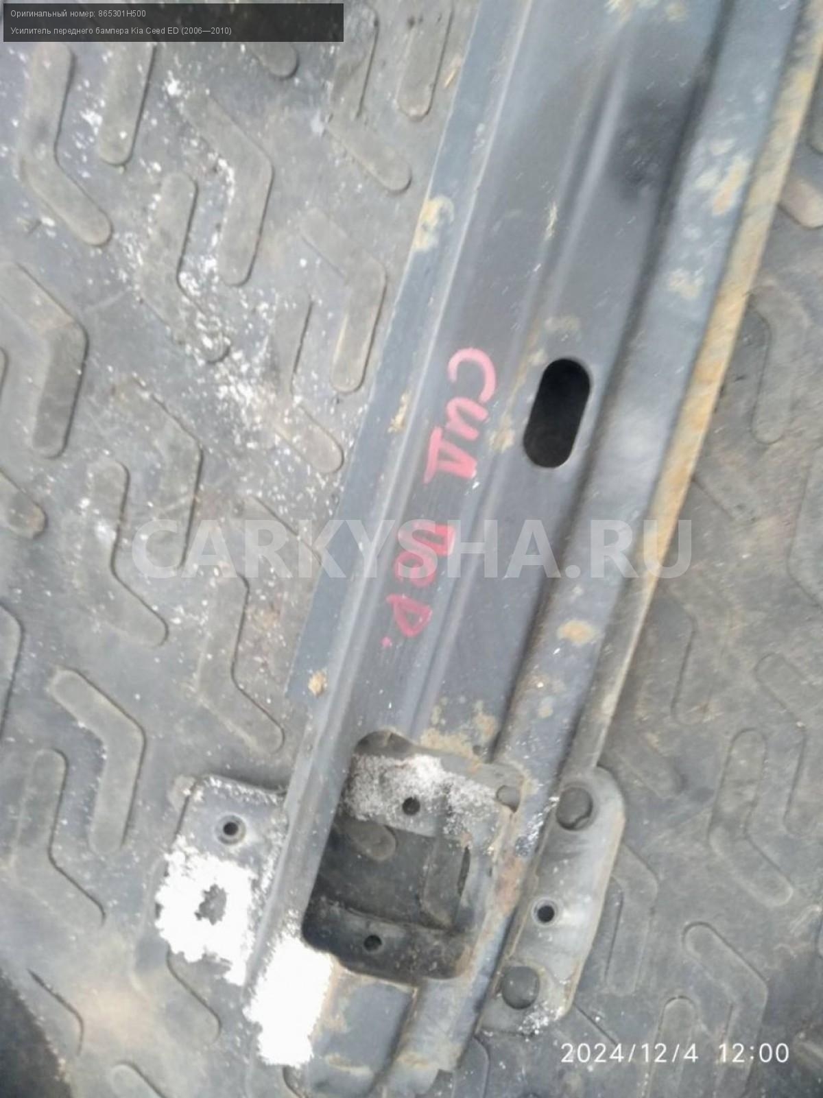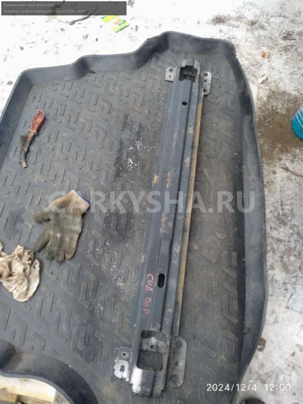 Kia Ceed ED, усилитель переднего бампера.\nАртикул: 6512\n\nОриг. номер: 865301H500\nПроизводитель: Hyundai-KIA\nПримечание:Киа Сид 1 ED, усилитель переднего бампера, б/у. \n\nМарка: Kia\nМодель: Ceed ED (2006—2010)\nГод выпуска: 2007\nКузов тип: Хетчбэк\nДвигатель номер: G4FC\nМодель двигателя: инжектор\nОбъем: 1.6\nТопливо: Бензин\nКоробка: Автомат\nЦвет: Черный\nПеред/Зад: Перед\nСовместимости: Kia Ceed ED (2006—2010) 1.6 AT (122 л.с.)\nСовместимость: