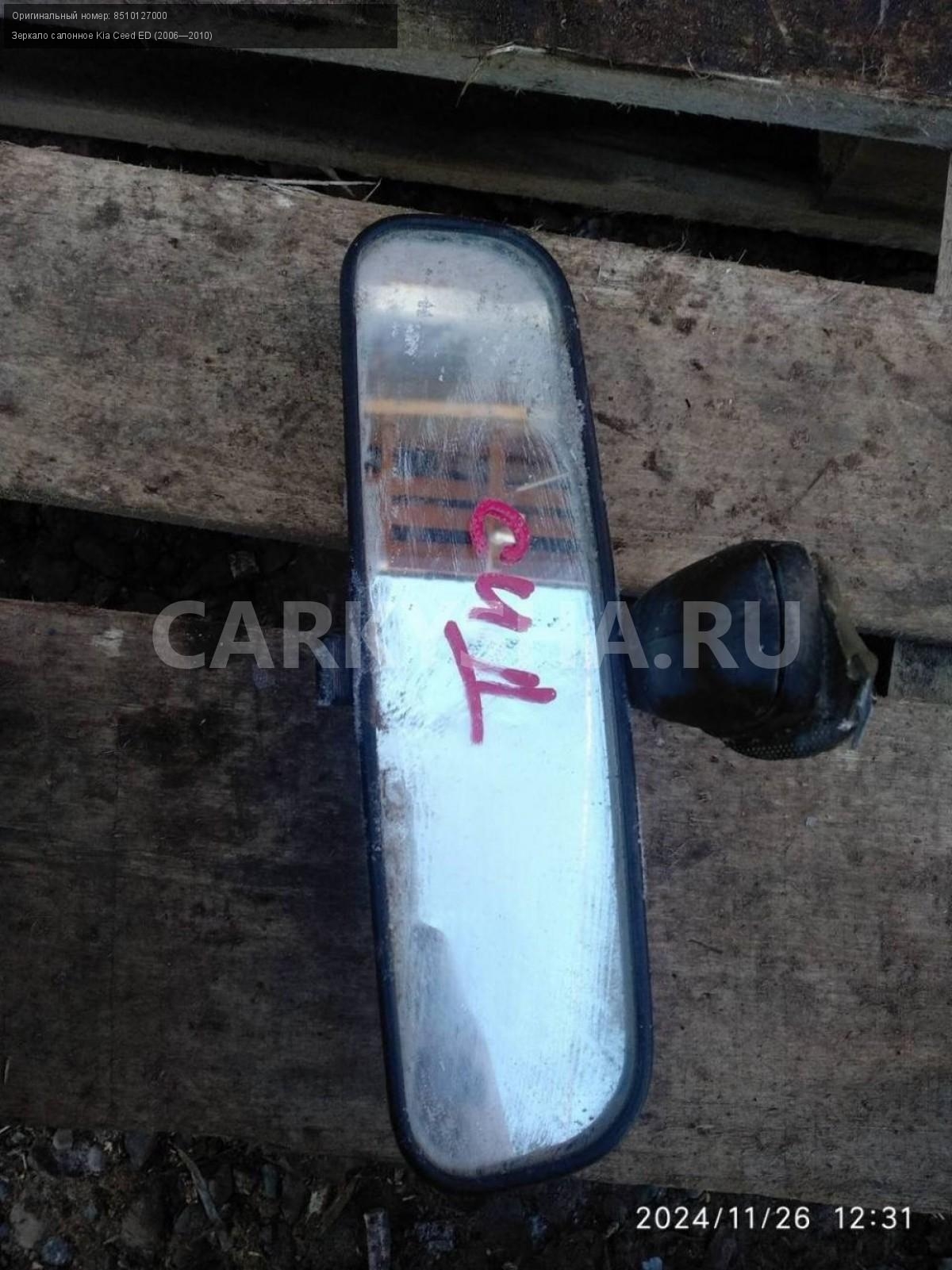 Kia Ceed ED, зеркало салонное.\nАртикул: 6448\n\nОриг. номер: 8510127000\nПроизводитель: Hyundai-KIA\nПримечание:Киа Сид 1 ED, зеркало салонное, б/у. \n\nМарка: Kia\nМодель: Ceed ED (2006—2010)\nГод выпуска: 2007\nКузов тип: Хетчбэк\nДвигатель номер: G4FC\nМодель двигателя: инжектор\nОбъем: 1.6\nТопливо: Бензин\nКоробка: Автомат\nЦвет: Черный\nСовместимости: Kia Ceed ED (2006—2010) 1.6 AT (122 л.с.)\nСовместимость: