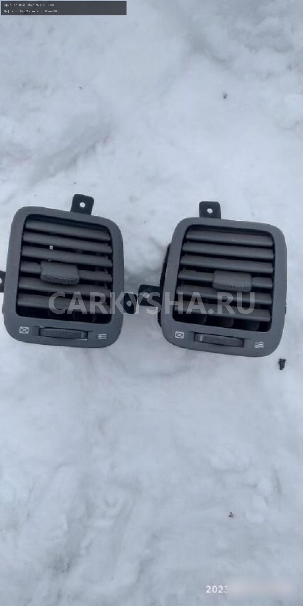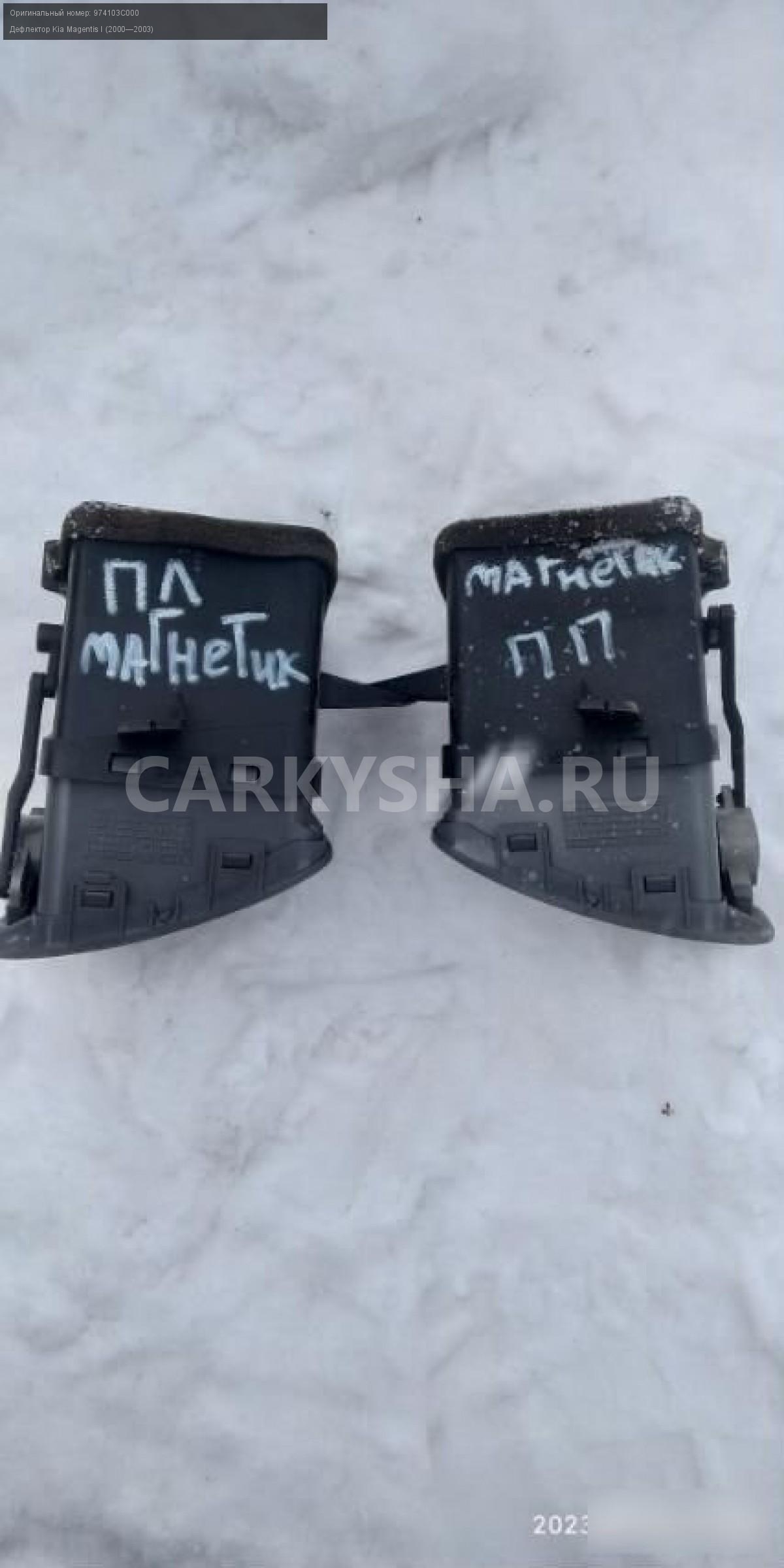 Kia Magentis 1 дефлектоы боковые\nАртикул: 1196\n\nОриг. номер: 974103C000\nПримечание:Kia Magentis 1 дефлектоы боковые.НАЛИЧИЕ ЗАПЧАСТИ УТОЧНИТЕ ПО ТЕЛЕФОНУ ИЛИ В СООБЩЕНИЯХ,б/у, а так же множество авто в разборе, работаем с регионами отправка тк, выкуп авто после дтп по всей России, отправка тк осуществляется после 100% оплаты, наложенным платежом не работаем, стоимость доставки не рассчитываем\n\nМарка: Kia\nМодель: Magentis I (2000—2003)\nКузов тип: Седан\nОбъем: 2.0\nТопливо: Бензин\nКоробка: Механика\nСовместимости: Kia Magentis I (2000—2003) 2.0 MT (136 л.с.)\nСовместимость: