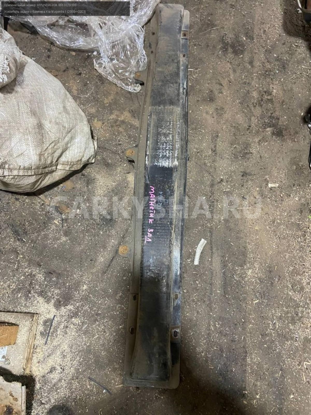 Kia Magentis I , усилитель заднего бампера.\nАртикул: 4091\n\nОриг. номер: HYUNDAI-KIA 866302G500\nПроизводитель: Hyundai-KIA\nПримечание:Киа Маджентис 1, усилитель заднего бампера. БУ\n\nМарка: Kia\nМодель: Magentis I (2000—2003)\nСовместимости: Kia Magentis I (2000—2003)\nСовместимость: