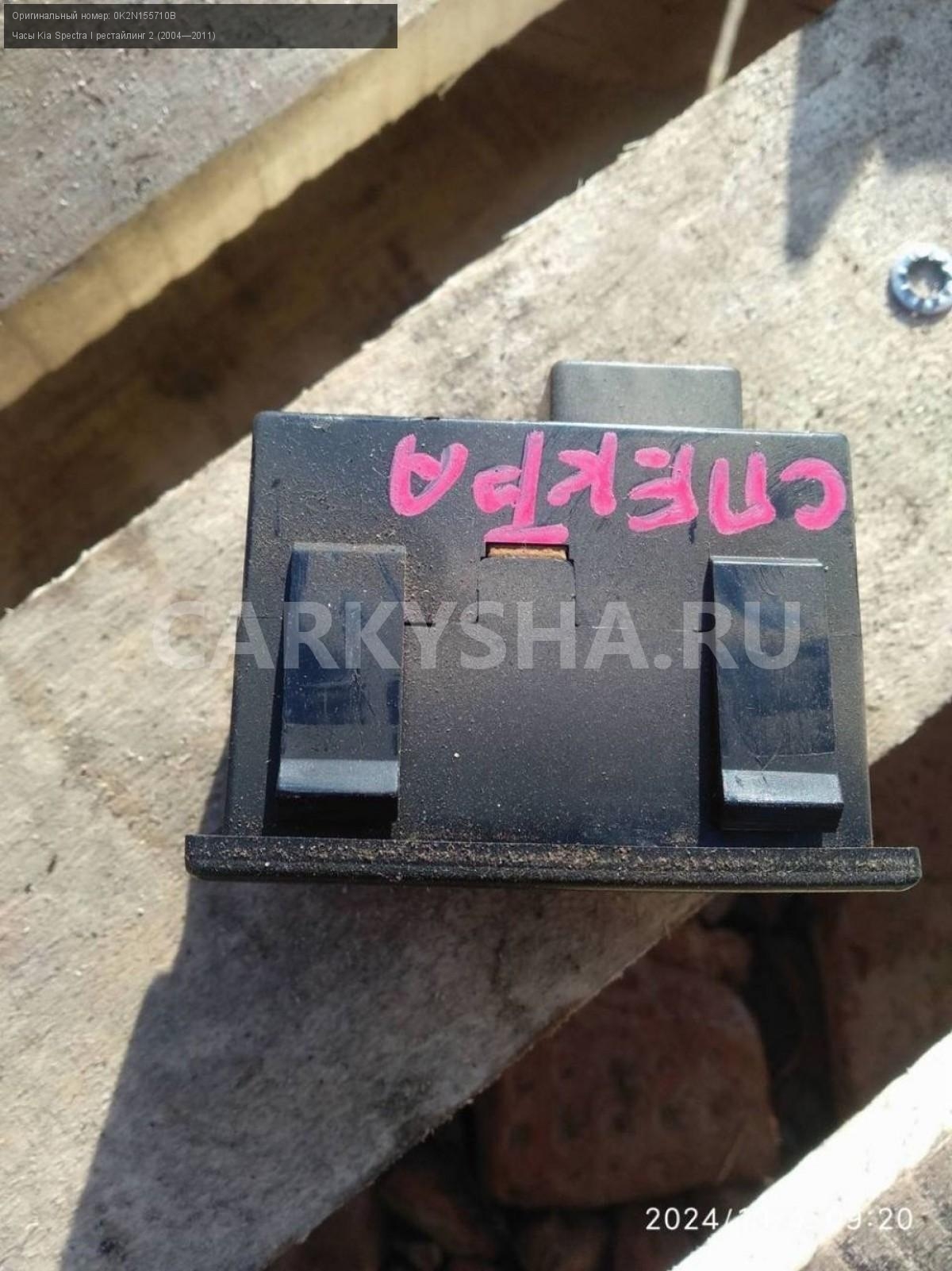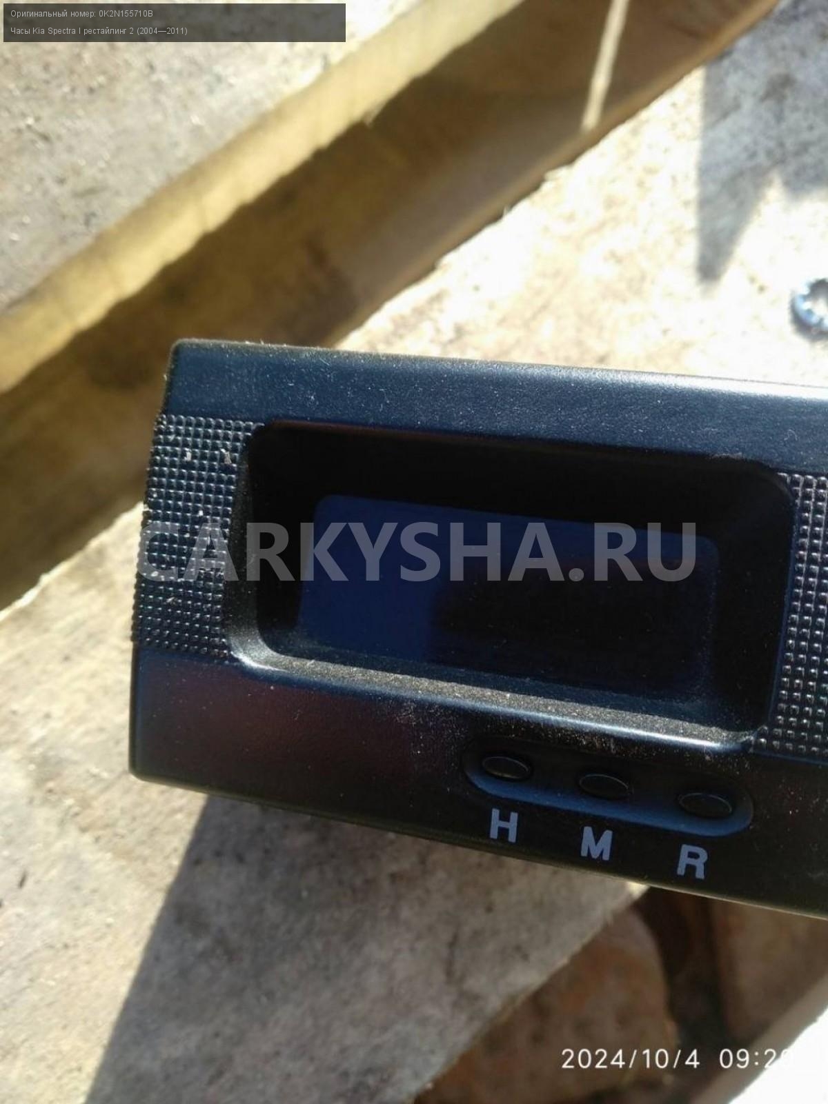 Kia Spectra, часы.\nАртикул: 5888\n\nОриг. номер: 0K2N155710B\nПроизводитель: Hyundai-KIA\nПримечание:Киа Спектра, Часы, б/у. \n\nМарка: Kia\nМодель: Spectra I рестайлинг 2 (2004—2011)\nКузов тип: Седан\nДвигатель номер: S6D\nМодель двигателя: инжектор\nОбъем: 1.6\nТопливо: Бензин\nКоробка: Механика\nЦвет: Серебристый\nСовместимости: Kia Spectra I рестайлинг 2 (2004—2011) 1.6 MT (101 л.с.)\nСовместимость: