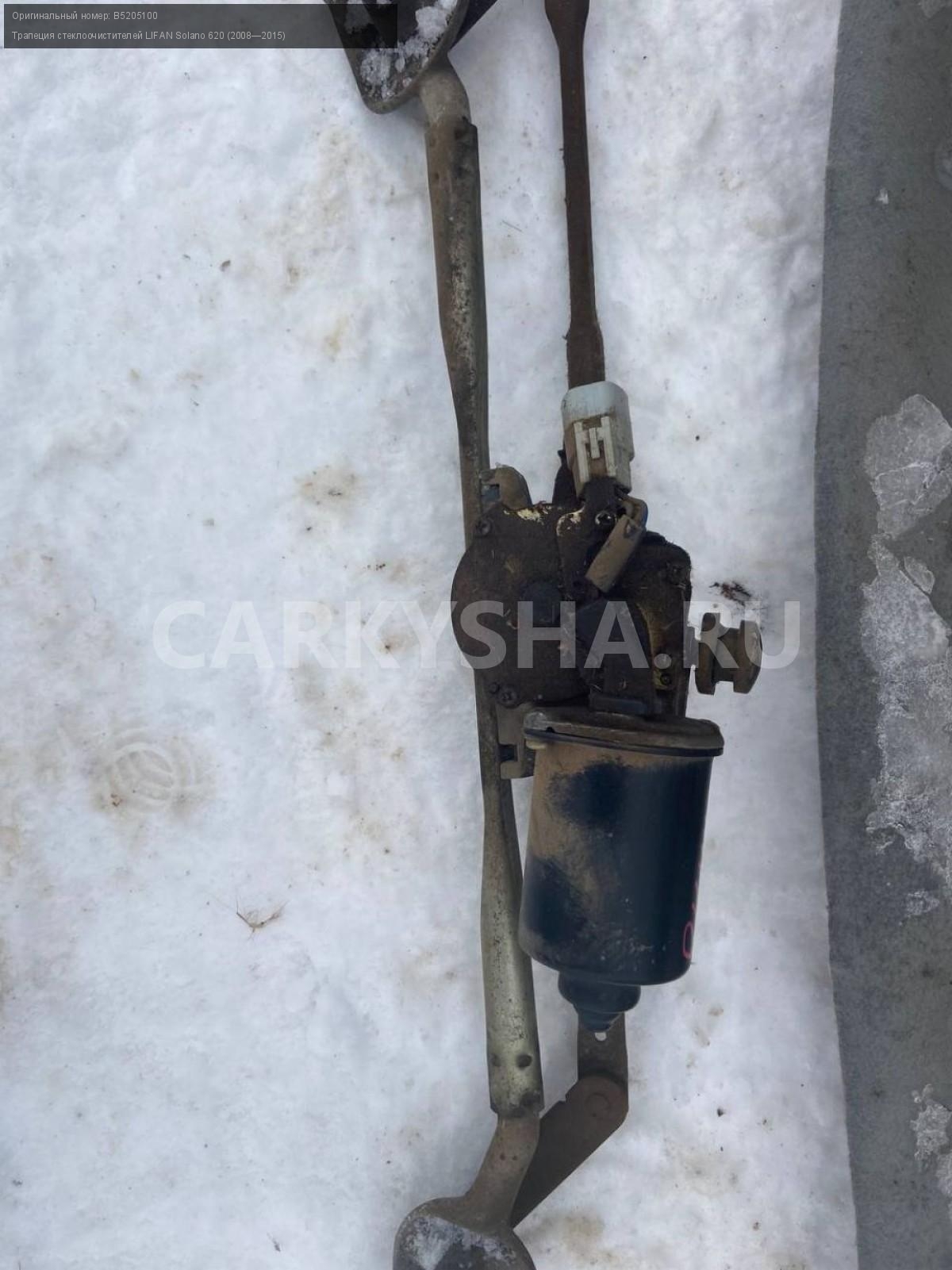 LIFAN Solano 620, трапеция дворников в сборе.\nАртикул: 3842\n\nОриг. номер: B5205100\nПроизводитель: LIFAN\nПримечание:Лифан Солано 620, Трапеция дворников в сборе, б/у. \n\nМарка: LIFAN\nМодель: Solano 620 (2008—2015)\nГод выпуска: 2013\nКузов тип: Седан\nДвигатель номер: LF481Q3\nМодель двигателя: инжектор\nОбъем: 1.6\nТопливо: Бензин\nКоробка: Механика\nЦвет: Черный\nСовместимости: LIFAN Solano 620 (2008—2015) 1.6 MT (106 л.с.)\nСовместимость: