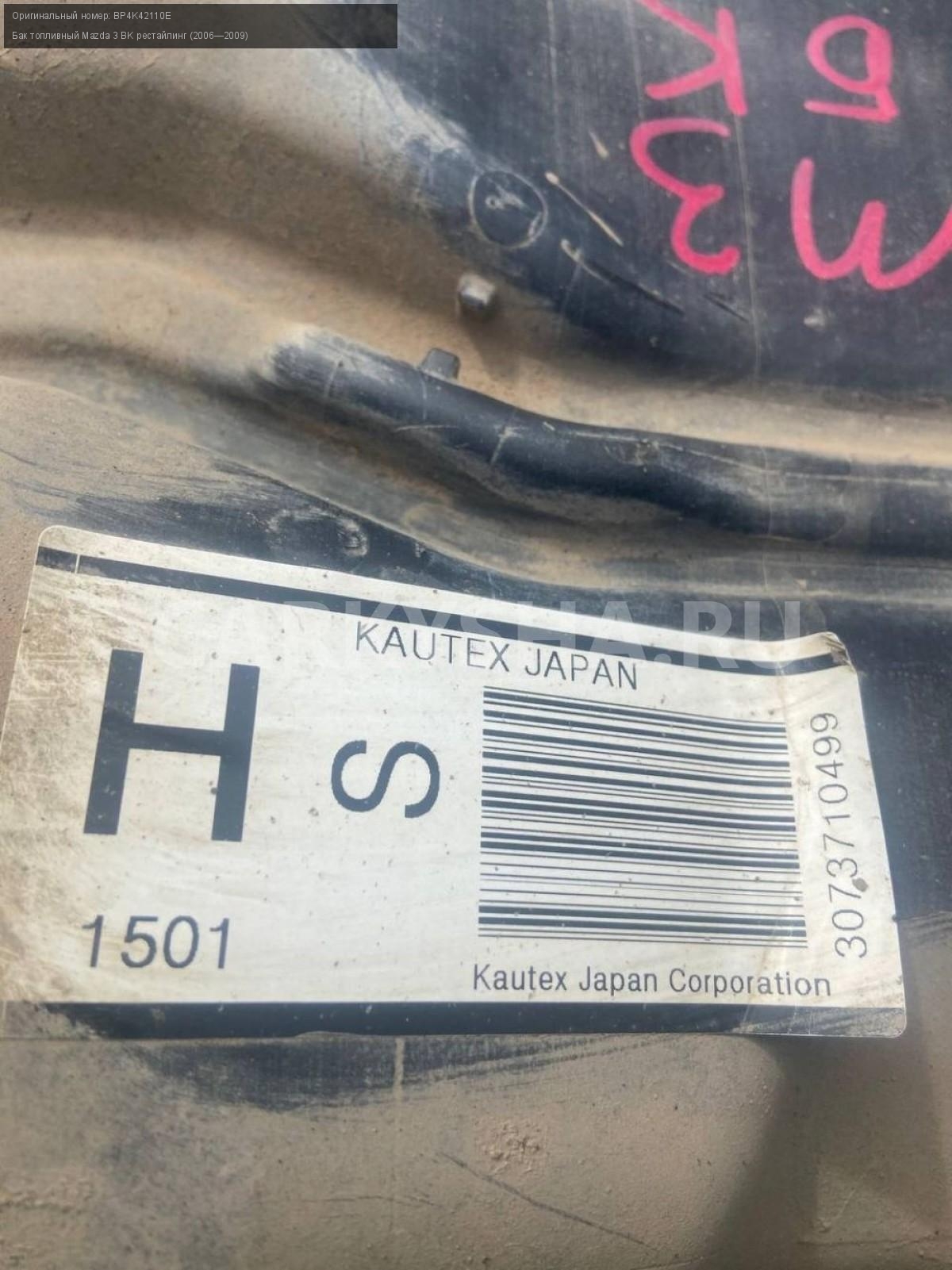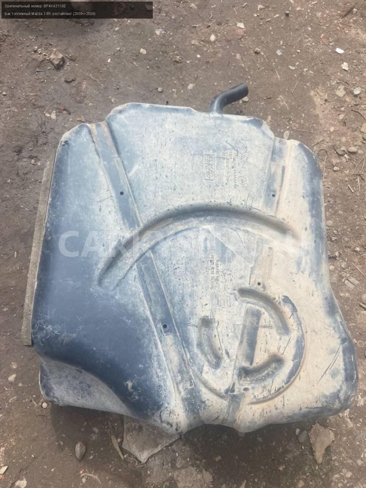 Mazda 3 BK хэтчбек, бак топливный, бензобак.\nАртикул: 7655\n\nОриг. номер: BP4K42110E\nПроизводитель: MAZDA\nПримечание:Мазда 3 ВК хэтчбек, бак топливный, бензобак, б/у. \n\nМарка: Mazda\nМодель: 3 BK рестайлинг (2006—2009)\nГод выпуска: 2007\nКузов тип: Хетчбэк\nДвигатель номер: Z6\nМодель двигателя: инжектор\nОбъем: 1.6\nТопливо: Бензин\nКоробка: Автомат\nЦвет: 34N\nСовместимости: Mazda 3 BK рестайлинг (2006—2009) 1.6 AT (105 л.с.)\nСовместимость: