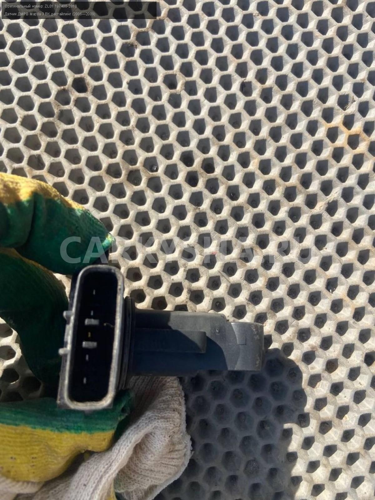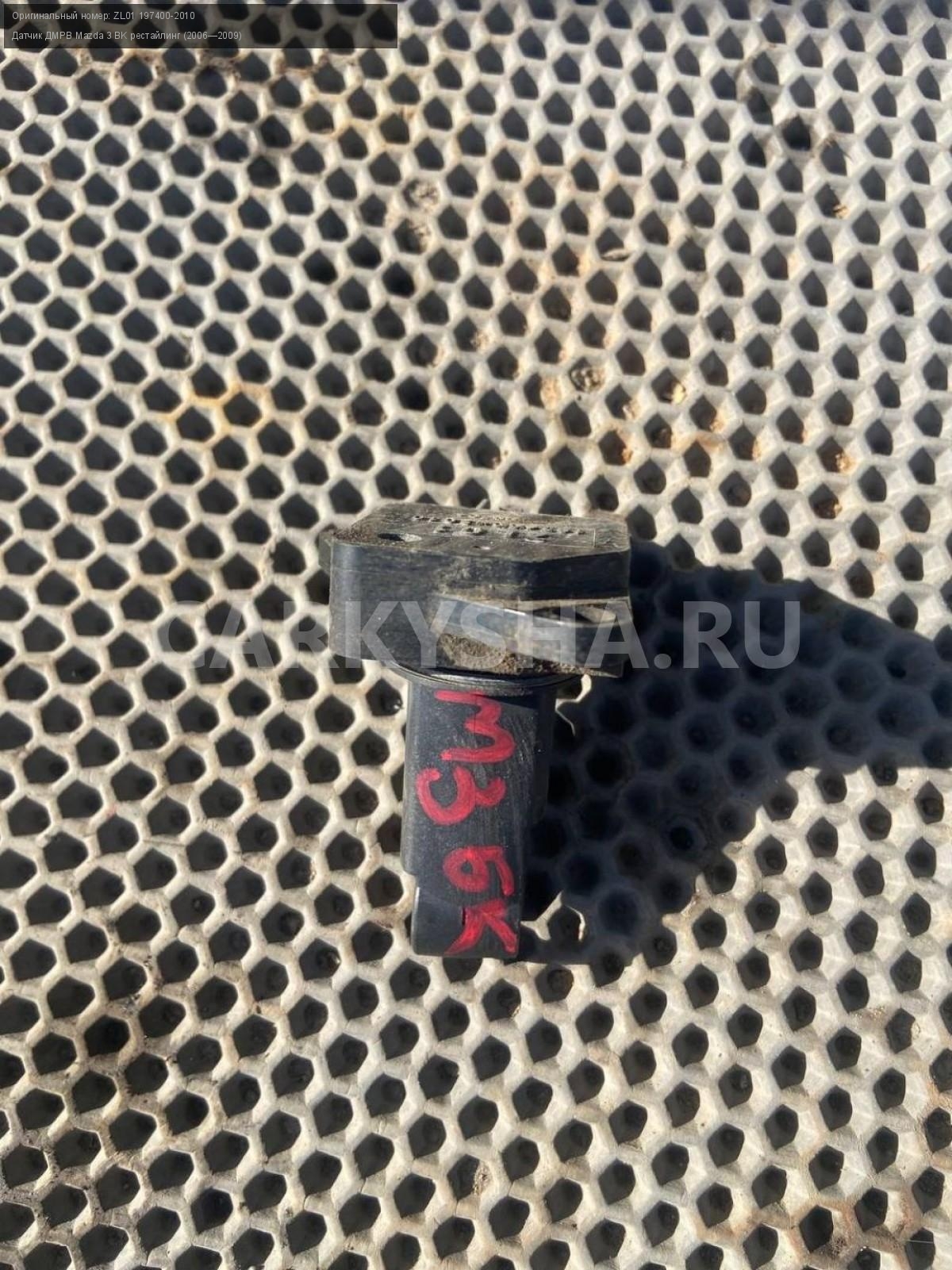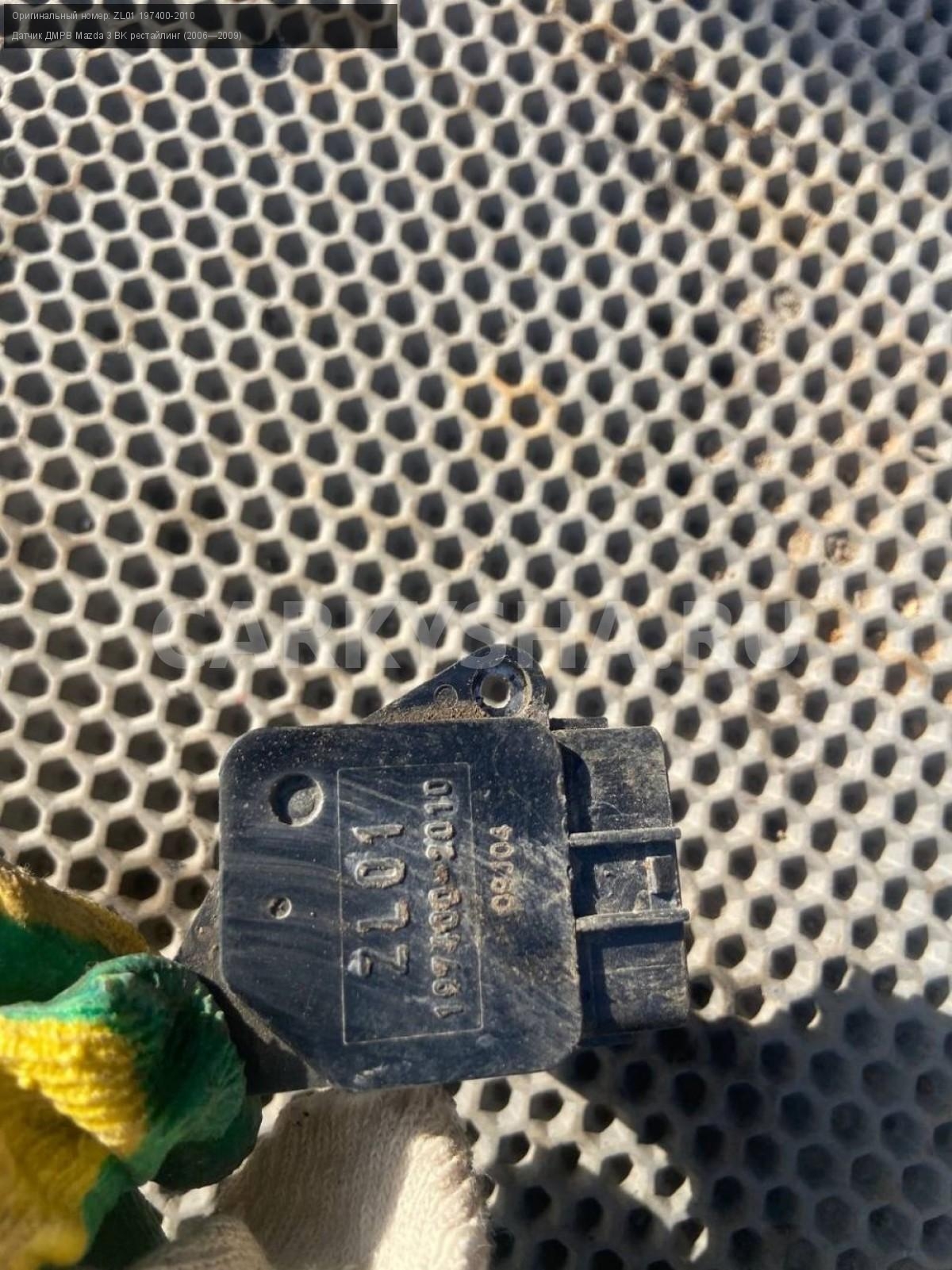 Mazda 3 BK, Датчик дмрв 1.6.\nАртикул: 7320\n\nОриг. номер: ZL01 197400-2010\nПроизводитель: MAZDA\nПримечание:Мазда 3 ВК, Датчик ДМРВ 1.6, б/у. \n\nМарка: Mazda\nМодель: 3 BK рестайлинг (2006—2009)\nГод выпуска: 2007\nКузов тип: Хетчбэк\nДвигатель номер: Z6\nМодель двигателя: инжектор\nОбъем: 1.6\nТопливо: Бензин\nКоробка: Автомат\nЦвет: 34N\nСовместимости: Mazda 3 BK рестайлинг (2006—2009) 1.6 AT (105 л.с.)\nСовместимость:
