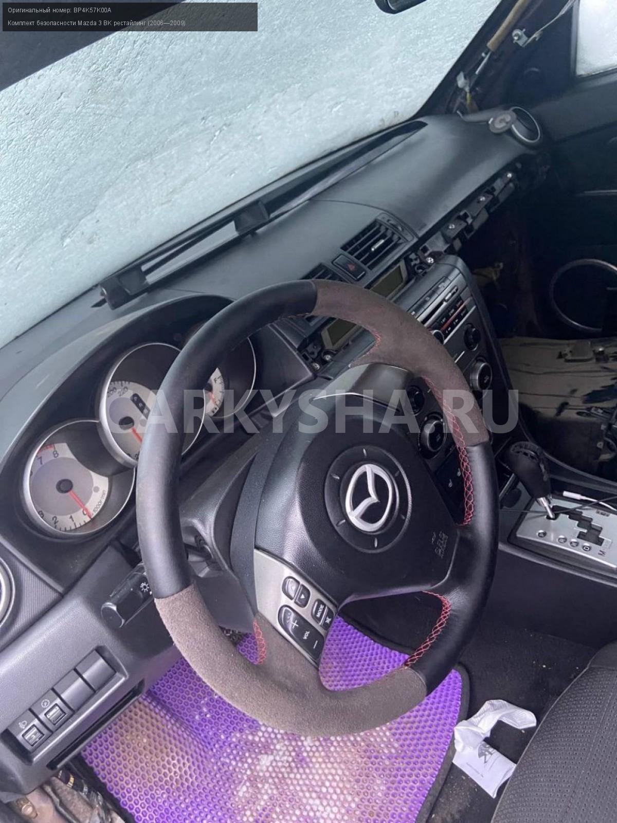 Mazda 3 BK рестайлинг, комплект безопасности.\nАртикул: 6548\n\nОриг. номер: BP4K57K00A\nПроизводитель: MAZDA\nПримечание:Мазда 3 ВК рестайлинг, комплект безопасности, б/у. \n\nМарка: Mazda\nМодель: 3 BK рестайлинг (2006—2009)\nГод выпуска: 2007\nКузов тип: Хетчбэк\nДвигатель номер: Z6\nМодель двигателя: инжектор\nОбъем: 1.6\nТопливо: Бензин\nКоробка: Автомат\nЦвет: 34N\nСовместимости: Mazda 3 BK рестайлинг (2006—2009) 1.6 AT (105 л.с.)\nСовместимость: