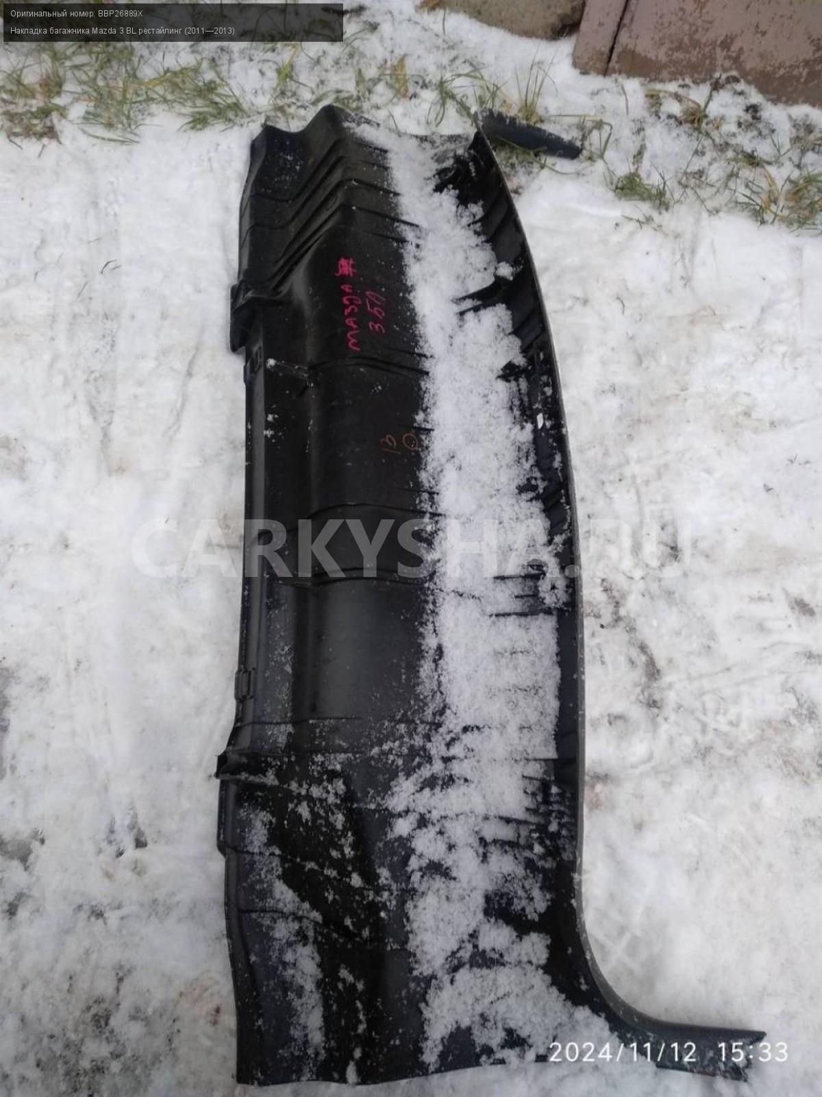 Mazda 3 BL седан, замковая панель багажника.\nАртикул: 6267\n\nОриг. номер: BBP26889X\nПроизводитель: MAZDA\nПримечание:Мазда 3 BL, седан, замковая панель багажника, б/у. \n\nМарка: Mazda\nМодель: 3 BL рестайлинг (2011—2013)\nГод выпуска: 2012\nКузов тип: Седан\nДвигатель номер: Z6\nМодель двигателя: инжектор\nОбъем: 1.6\nТопливо: Бензин\nКоробка: Автомат\nЦвет: Темно-Сервй\nСовместимости: Mazda 3 BL рестайлинг (2011—2013) 1.6 AT (105 л.с.)\nСовместимость: