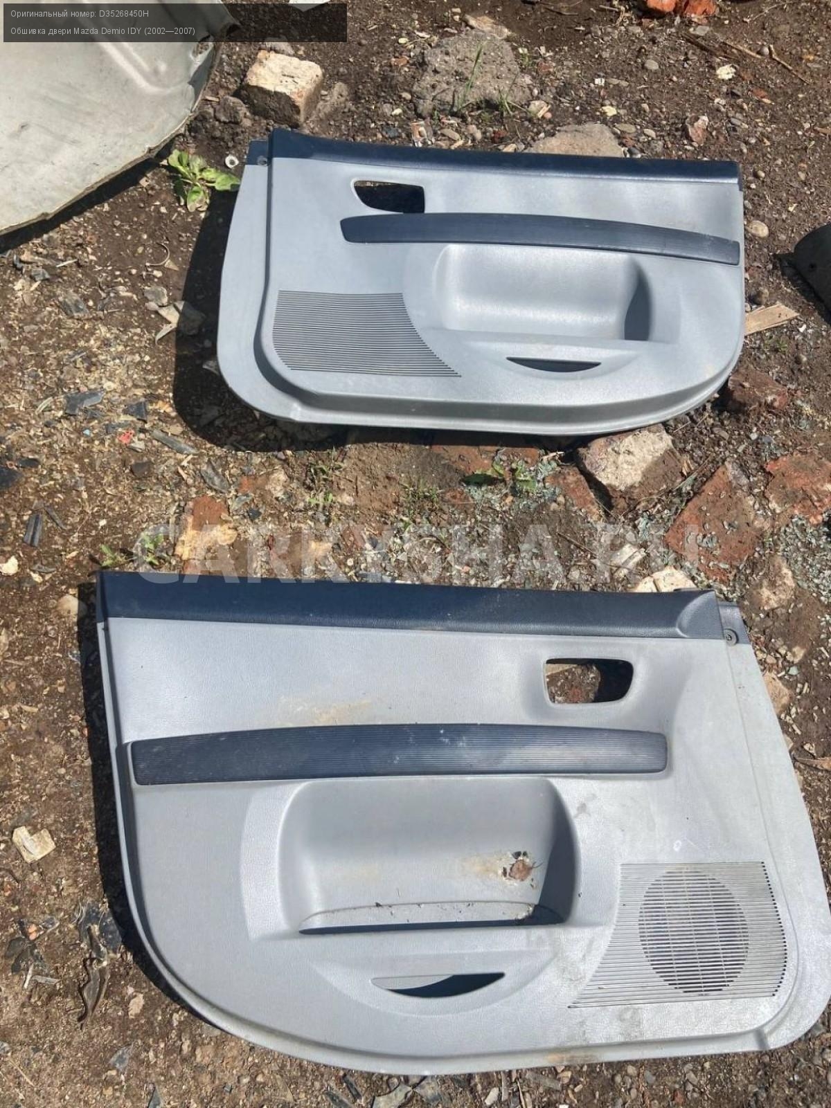Mazda Demio DY3, карты дверей передних.\nАртикул: 5087\n\nОриг. номер: D35268450H\nПроизводитель: MAZDA\nПримечание:Мазда Демио DY3, карты дверей передних, б/у. \n\nМарка: Mazda\nМодель: Demio IDY (2002—2007)\nГод выпуска: 2003\nКузов номер: DY3W254283\nКузов тип: Хетчбэк\nДвигатель номер: DY3\nМодель двигателя: инжектор\nОбъем: 1.4\nТопливо: Бензин\nКоробка: Автомат\nЦвет: Синий\nПраво/Лево: Право/Лево\nПеред/Зад: Перед\nСовместимости: Mazda Demio IDY (2002—2007) 1.4 AT (91 л.с.)\nСовместимость: