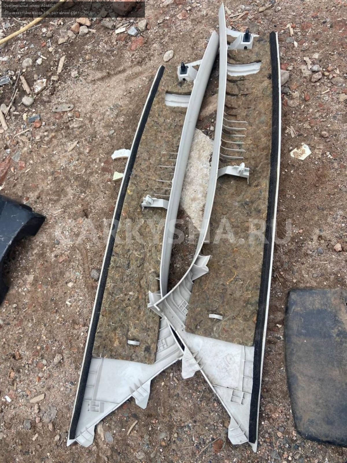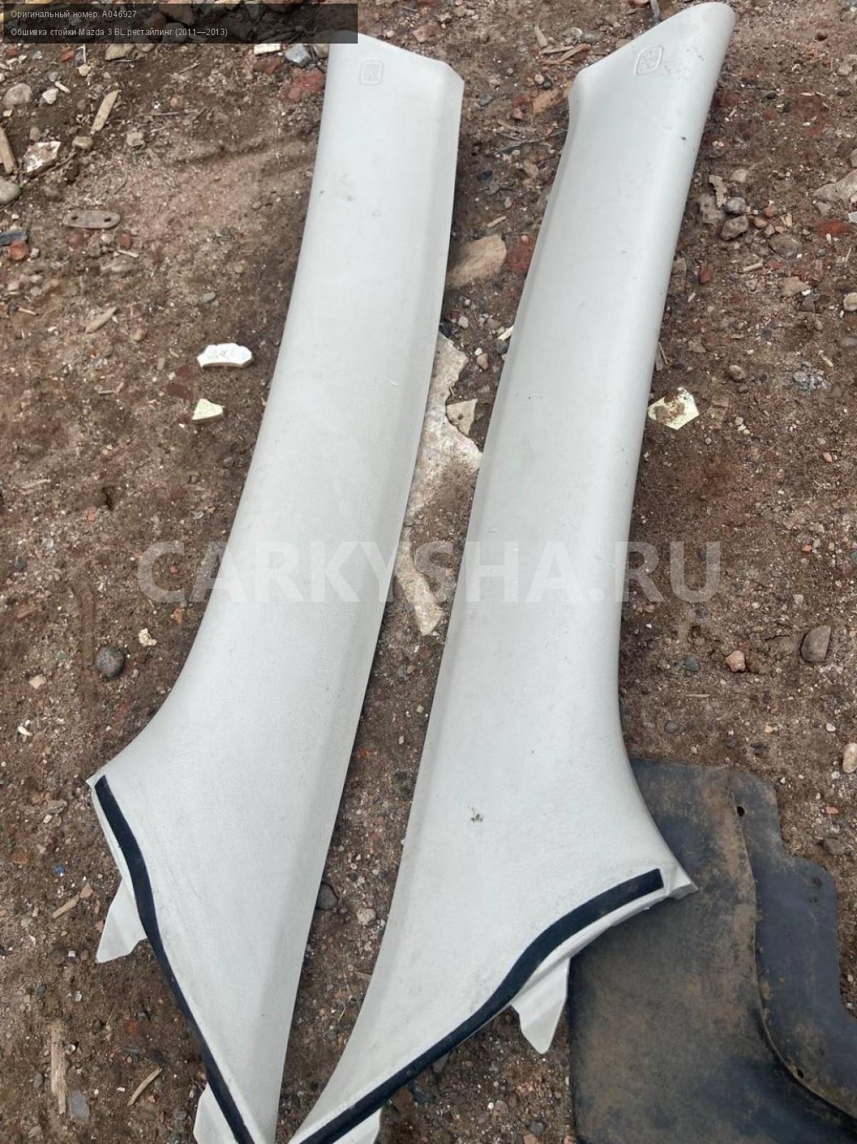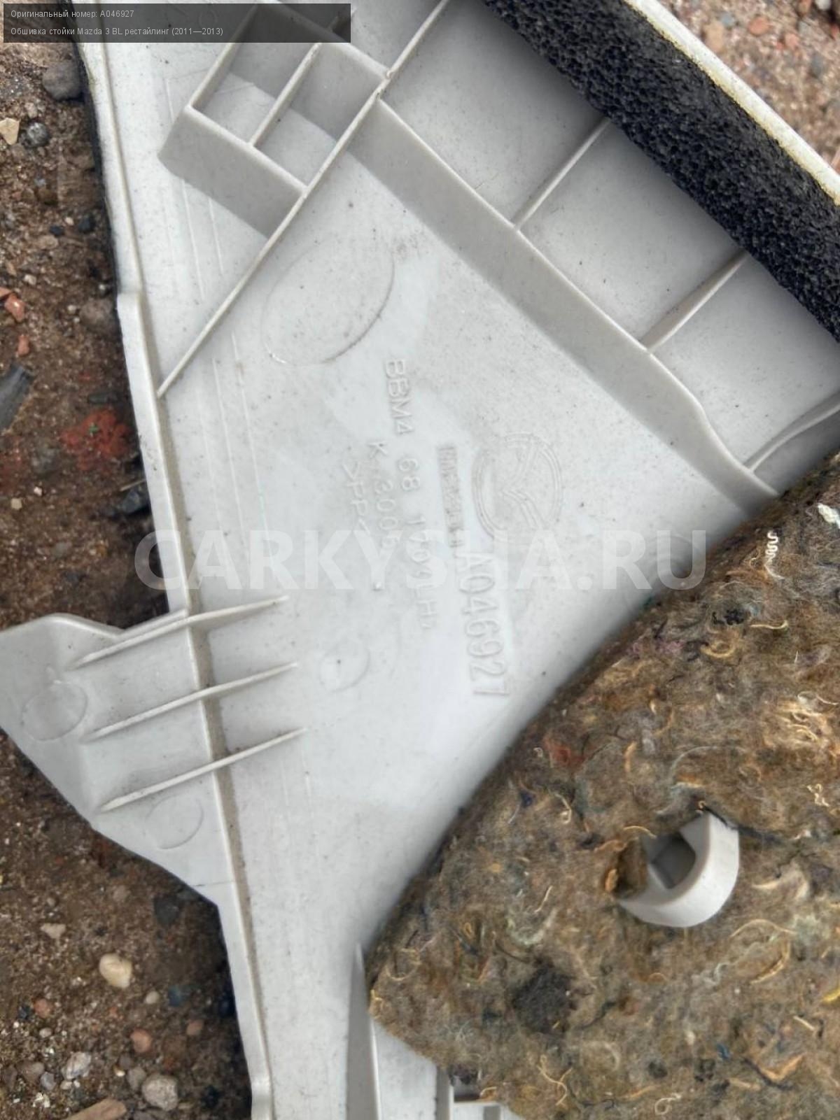 Mazda 3 BL, обшивки передних стоек, пара.\nАртикул: 5422\n\nОриг. номер: A046927\nПроизводитель: MAZDA\nПримечание:Мазда 3 BL, обшивки передних стоек, цена за пару, б/у. \n\nМарка: Mazda\nМодель: 3 BL рестайлинг (2011—2013)\nГод выпуска: 2012\nКузов тип: Седан\nДвигатель номер: Z6\nМодель двигателя: инжектор\nОбъем: 1.6\nТопливо: Бензин\nКоробка: Автомат\nЦвет: Темно-Сервй\nПраво/Лево: Право/Лево\nПеред/Зад: Перед\nСовместимости: Mazda 3 BL рестайлинг (2011—2013) 1.6 AT (105 л.с.)\nСовместимость: