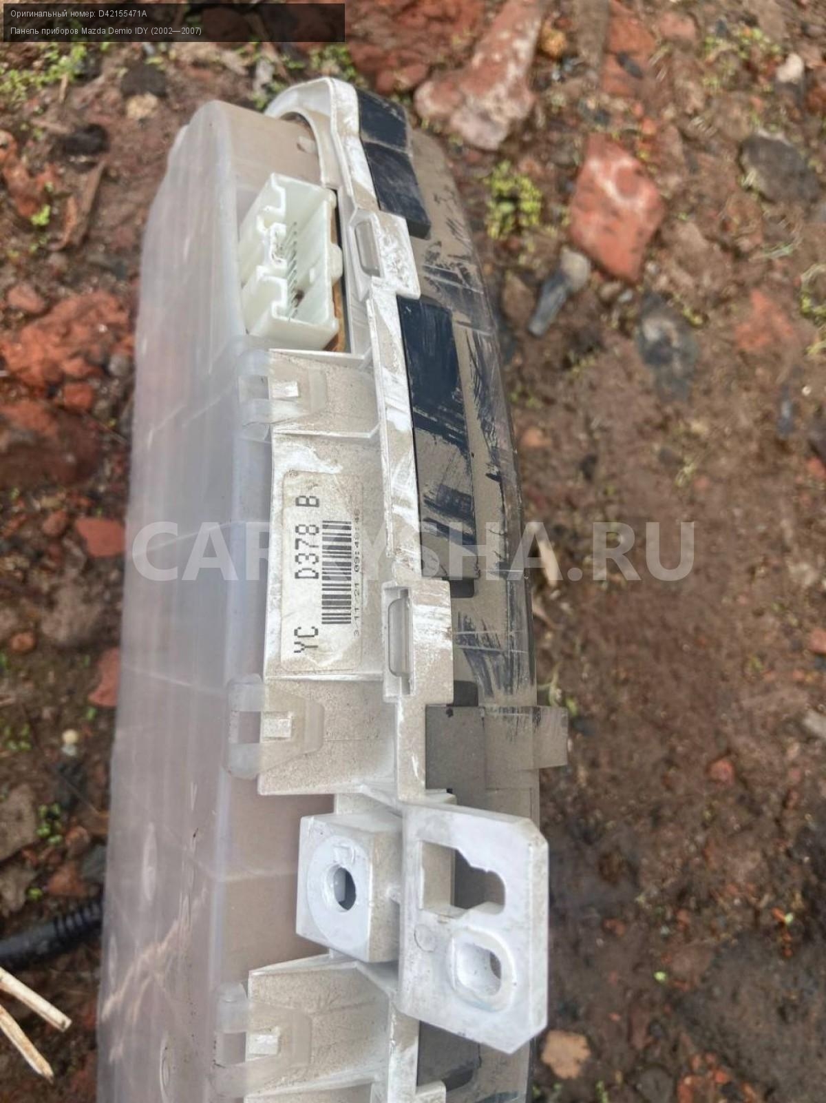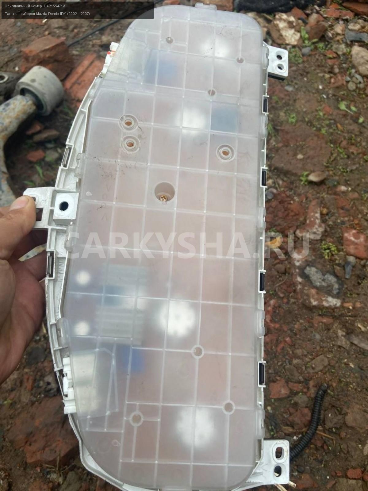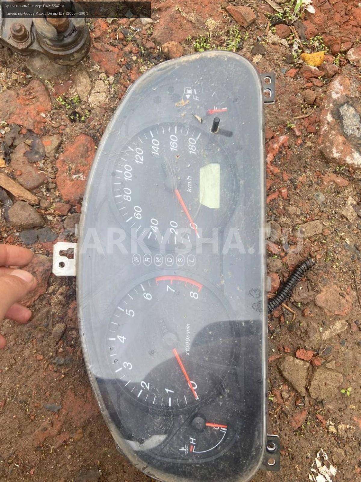 Mazda Demio DY3, панель приборов.\nАртикул: 5105\n\nОриг. номер: D42155471A\nПроизводитель: MAZDA\nПримечание:Мазда Демио DY3, щиток приборов, б/у. \n\nМарка: Mazda\nМодель: Demio IDY (2002—2007)\nГод выпуска: 2003\nКузов номер: DY3W254283\nКузов тип: Хетчбэк\nДвигатель номер: DY3\nМодель двигателя: инжектор\nОбъем: 1.4\nТопливо: Бензин\nКоробка: Автомат\nЦвет: Синий\nСовместимости: Mazda Demio IDY (2002—2007) 1.4 AT (91 л.с.)\nСовместимость: