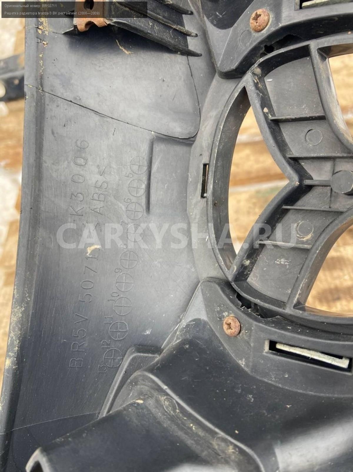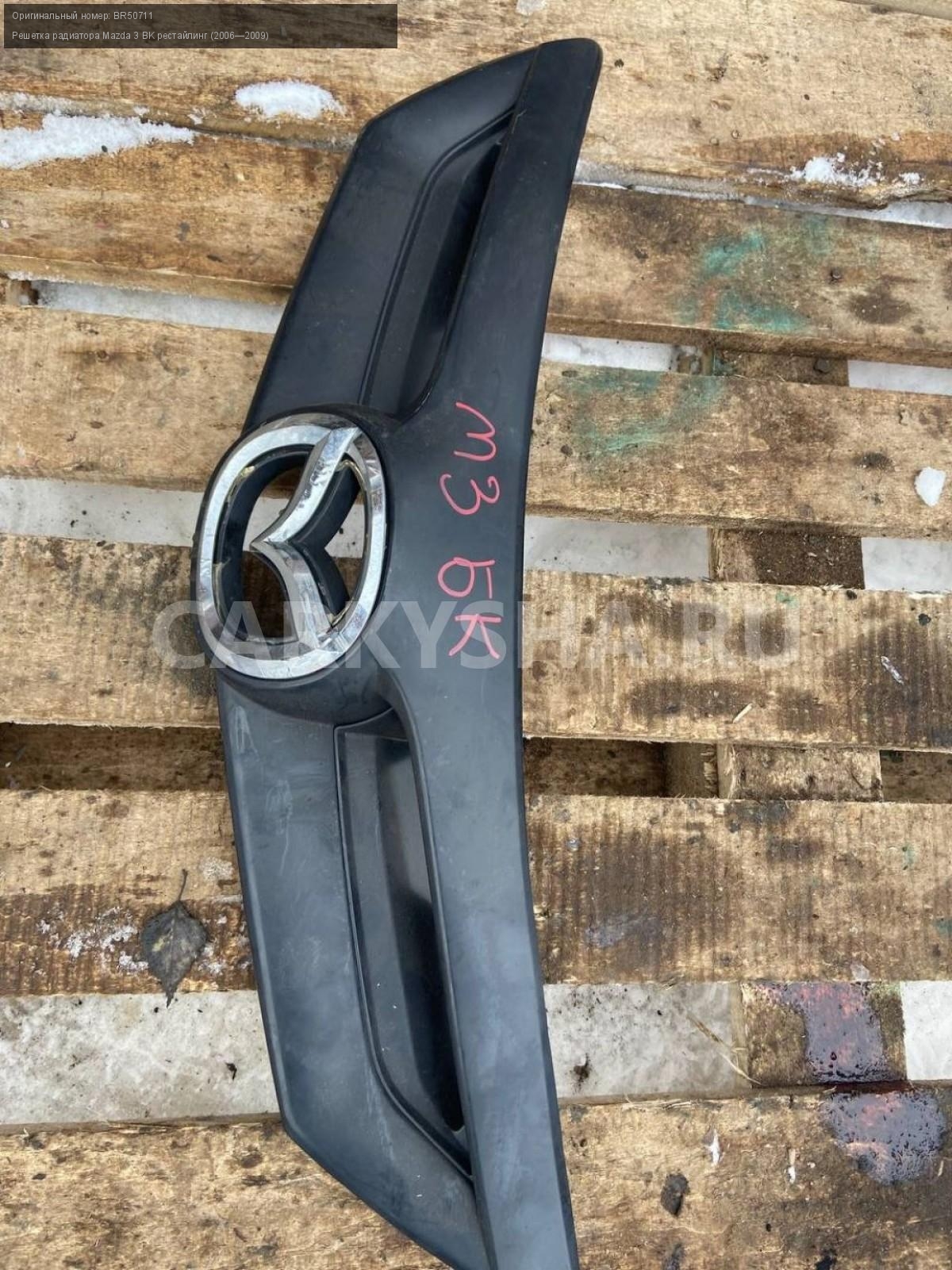 Mazda 3 BK хэтчбек рестайлинг, решетка радиатора.\nАртикул: 6770\n\nОриг. номер: BR50711\nПроизводитель: MAZDA\nПримечание:Мазда 3 ВК хэтчбек рестайлинг, решетка радиатора, б/у. \n\nМарка: Mazda\nМодель: 3 BK рестайлинг (2006—2009)\nГод выпуска: 2007\nКузов тип: Хетчбэк\nДвигатель номер: Z6\nМодель двигателя: инжектор\nОбъем: 1.6\nТопливо: Бензин\nКоробка: Автомат\nЦвет: 34N\nСовместимости: Mazda 3 BK рестайлинг (2006—2009) 1.6 AT (105 л.с.)\nСовместимость: