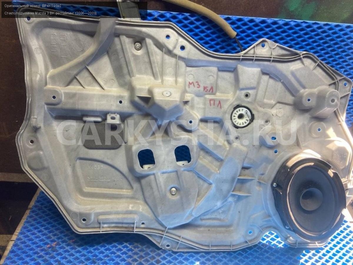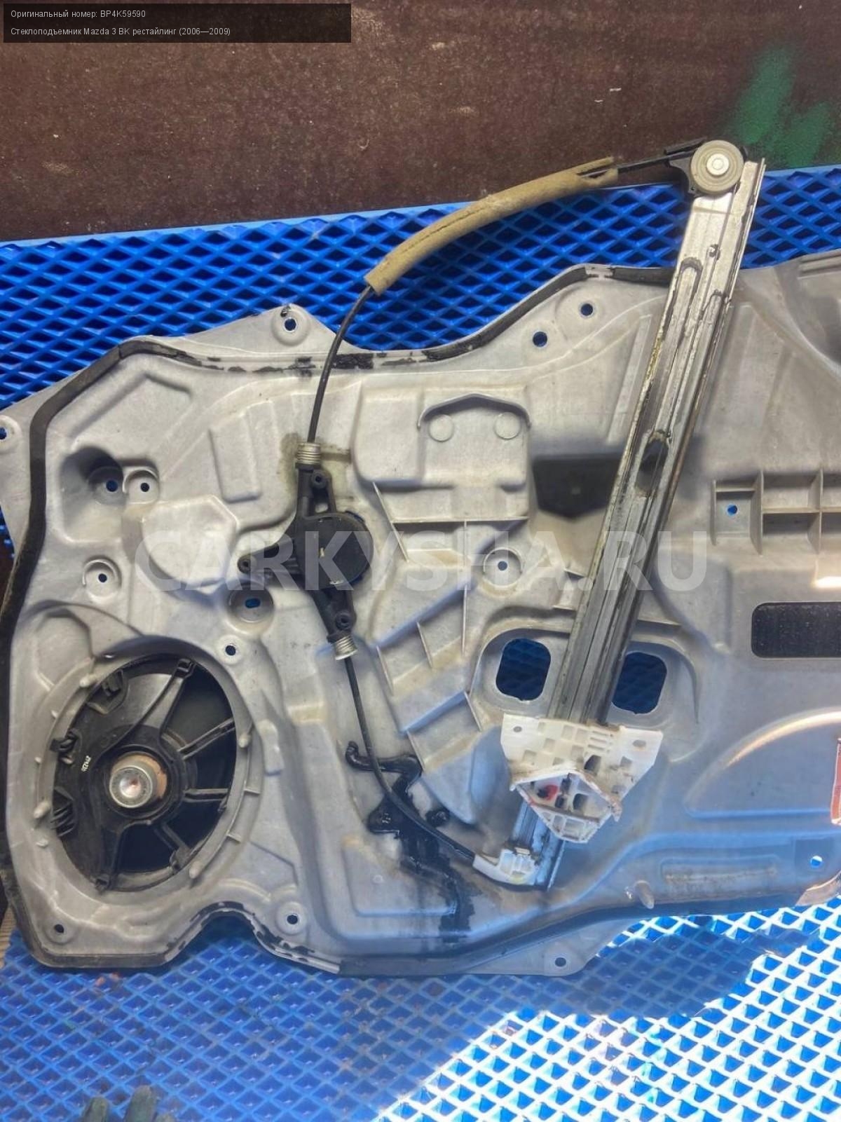 Mazda 3 BK, механизм стеклоподъемника передн левый\nАртикул: 8363\n\nОриг. номер: BP4K59590\nПроизводитель: MAZDA\nПримечание:Мазда 3ВК , механизм стеклоподъемника перердний левый, б/у. \n\nМарка: Mazda\nМодель: 3 BK рестайлинг (2006—2009)\nГод выпуска: 2007\nКузов тип: Хетчбэк\nДвигатель номер: Z6\nМодель двигателя: инжектор\nОбъем: 1.6\nТопливо: Бензин\nКоробка: Автомат\nЦвет: 34N\nПраво/Лево: Лево\nПеред/Зад: Перед\nСовместимости: Mazda 3 BK рестайлинг (2006—2009) 1.6 AT (105 л.с.)\nСовместимость: