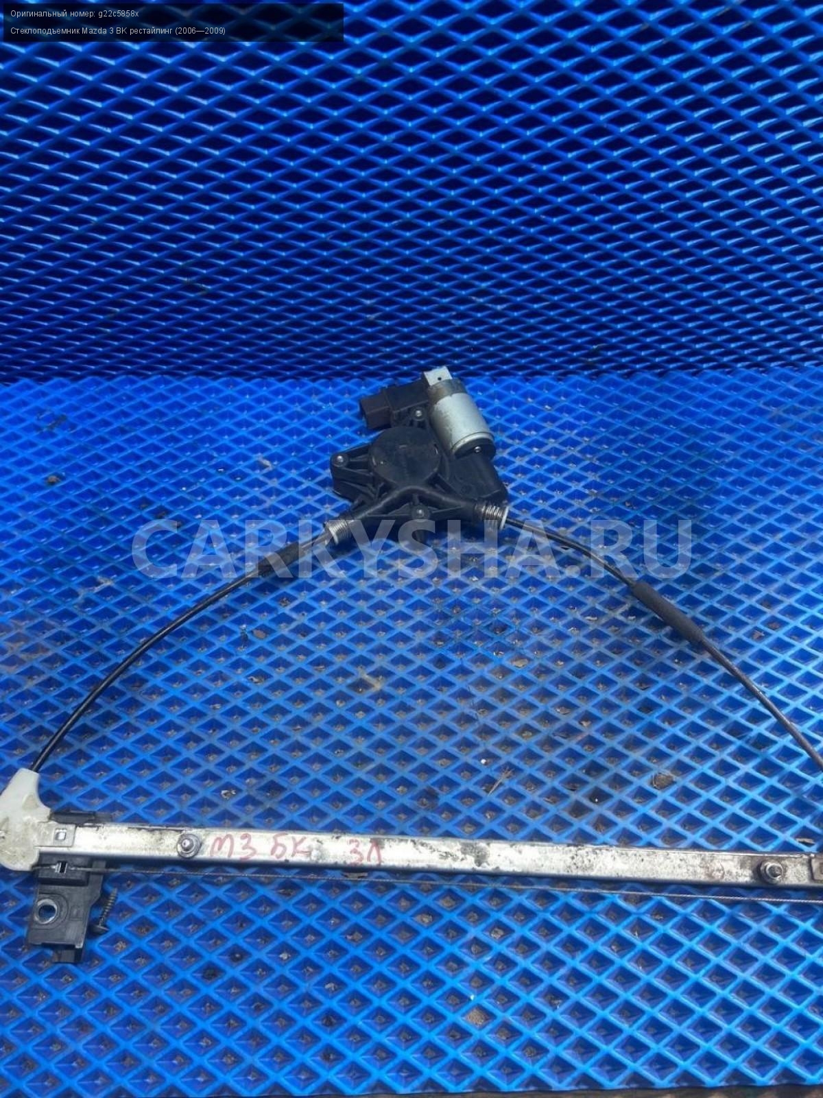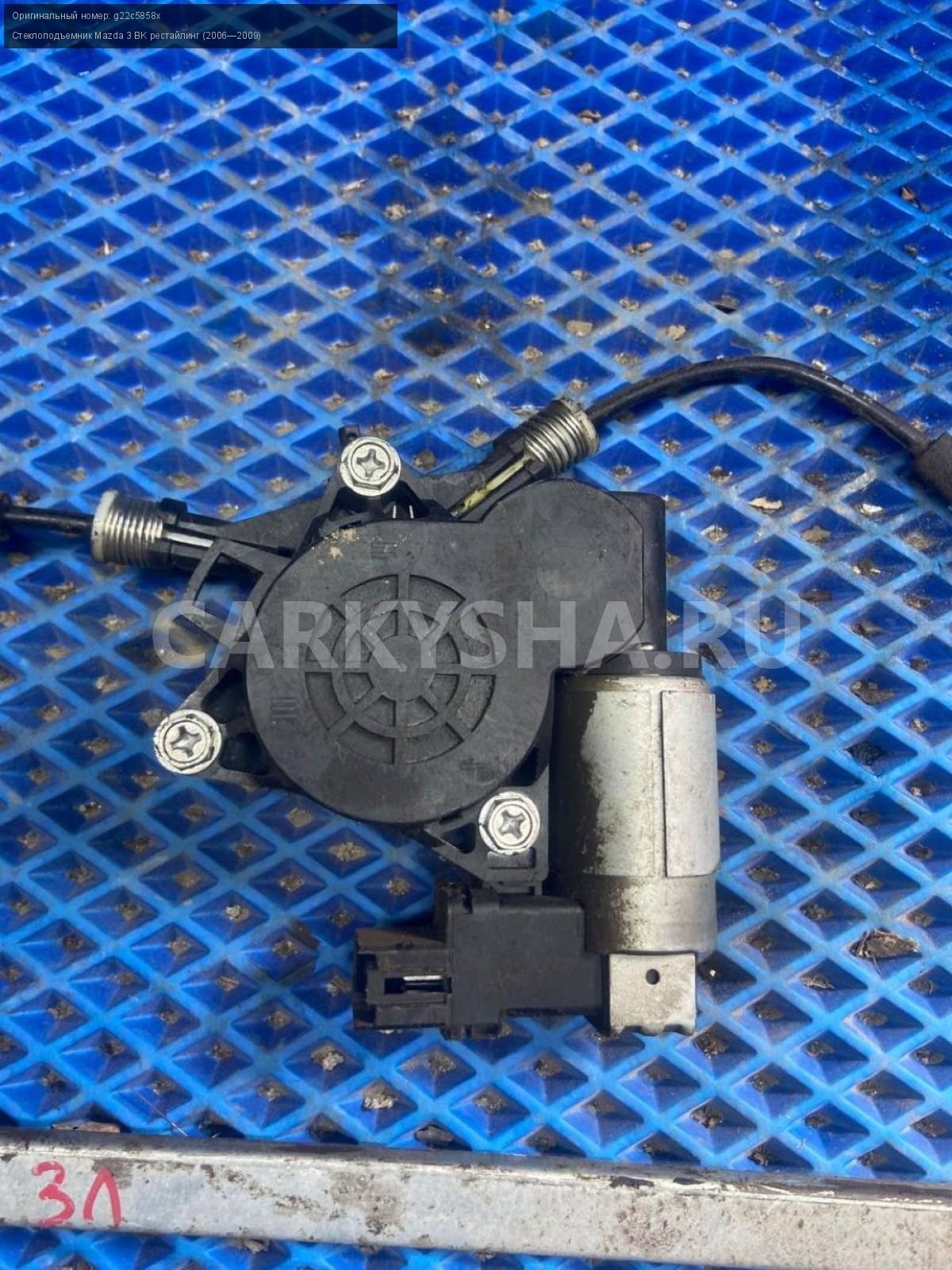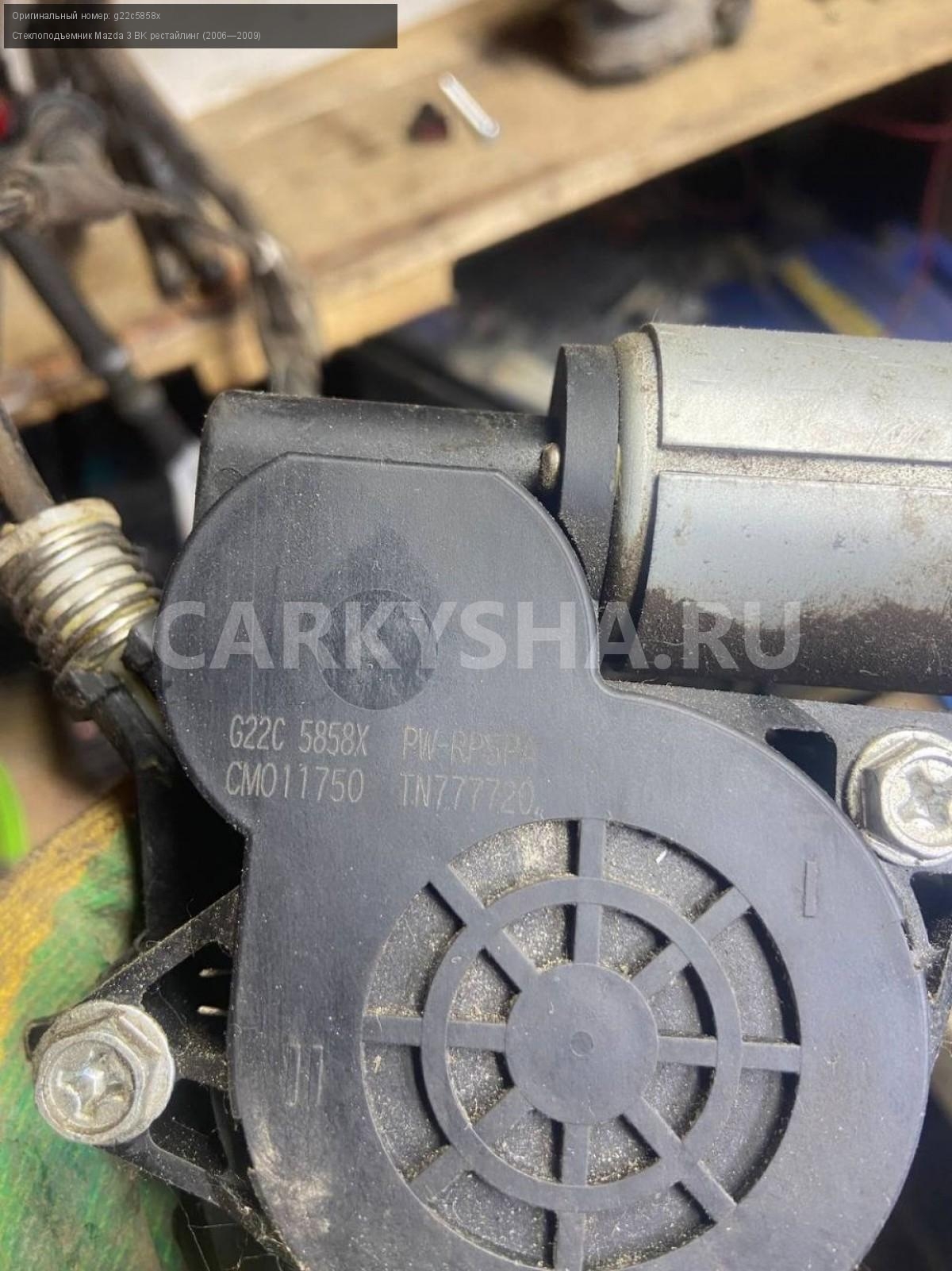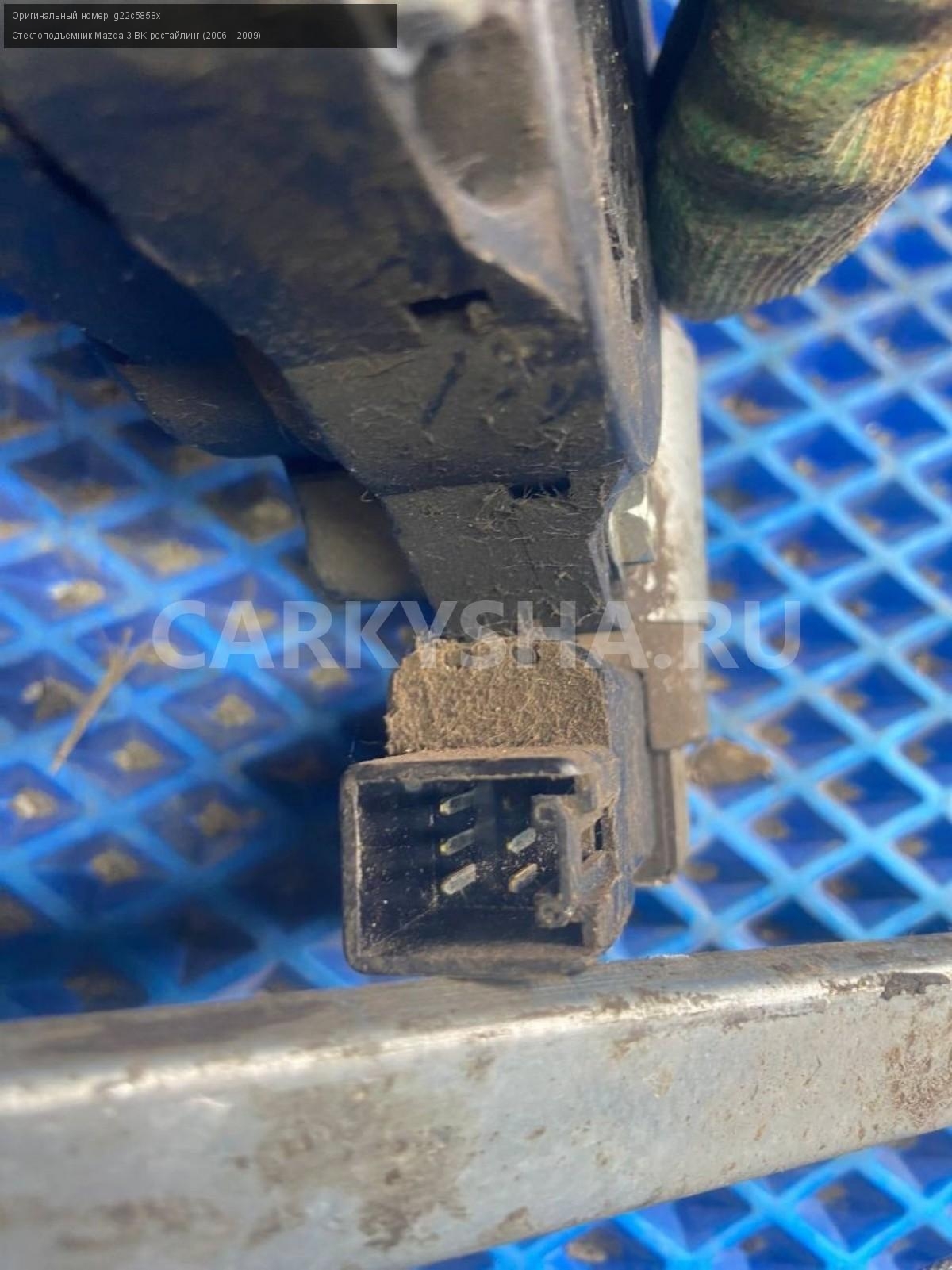 Mazda 3 BK, хэтчбек, стеклоподъемник задний левый\nАртикул: 8128\n\nОриг. номер: g22c5858x\nПроизводитель: MAZDA\nПримечание:Мазда 3 ВК, хэтчбек, стеклоподъемник задний левый, б/у. \n\nМарка: Mazda\nМодель: 3 BK рестайлинг (2006—2009)\nГод выпуска: 2007\nКузов тип: Хетчбэк\nДвигатель номер: Z6\nМодель двигателя: инжектор\nОбъем: 1.6\nТопливо: Бензин\nКоробка: Автомат\nЦвет: 34N\nПраво/Лево: Лево\nПеред/Зад: Зад\nСовместимости: Mazda 3 BK рестайлинг (2006—2009) 1.6 AT (105 л.с.)\nСовместимость: