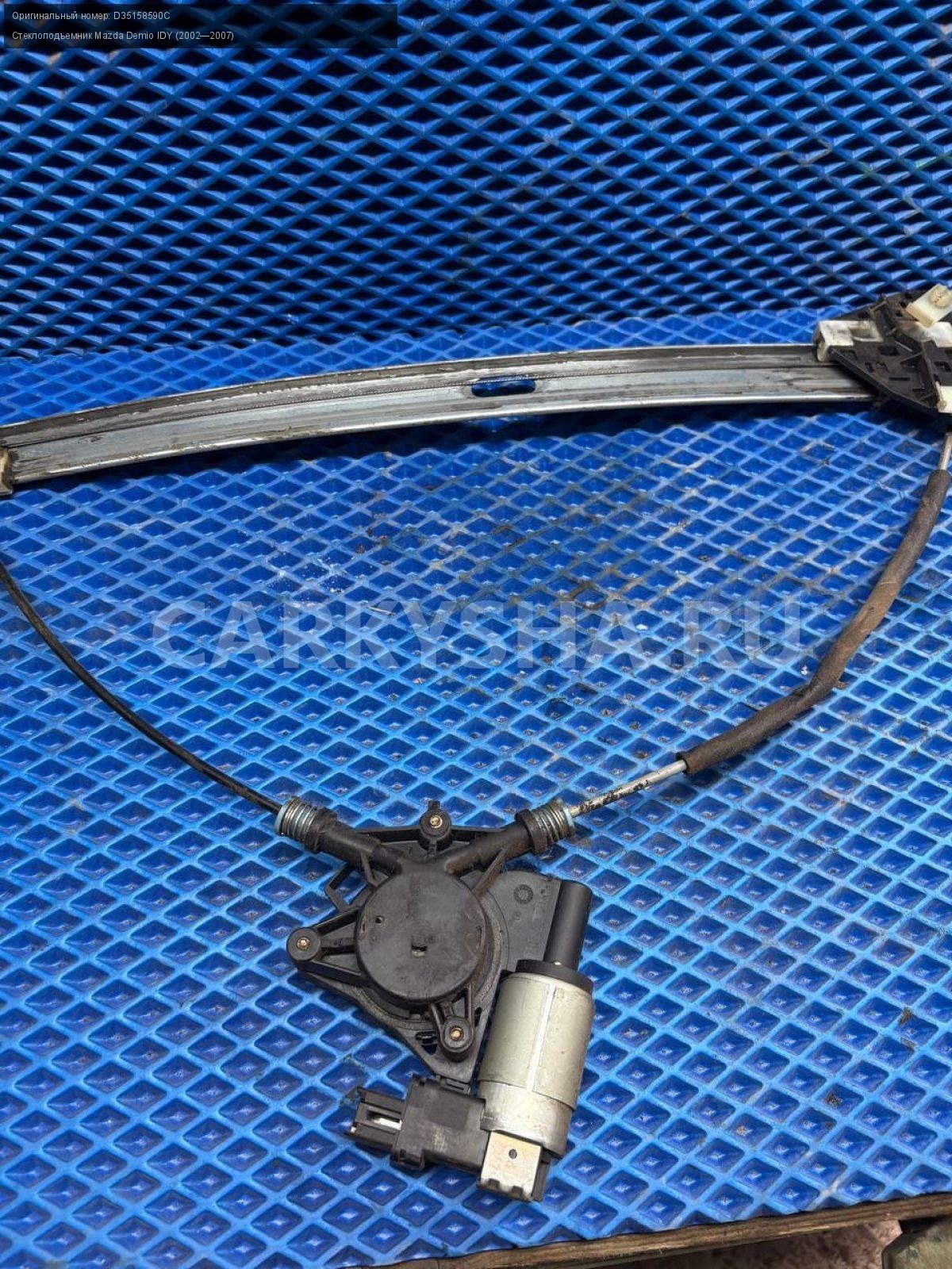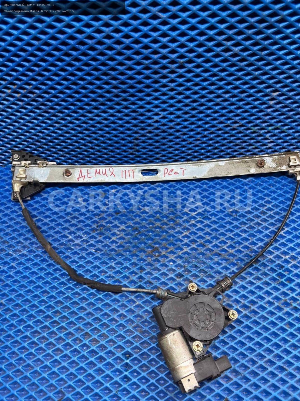 Mazda Demio DY3W, стеклоподъемник передний правый\nАртикул: 8700\n\nОриг. номер: D35158590C\nПроизводитель: MAZDA\nПримечание:Мазда Демио DY3W, стеклоподъемник передний правый, б/у. \n\nМарка: Mazda\nМодель: Demio IDY (2002—2007)\nГод выпуска: 2003\nКузов номер: DY3W254283\nКузов тип: Хетчбэк\nДвигатель номер: DY3\nМодель двигателя: инжектор\nОбъем: 1.4\nТопливо: Бензин\nКоробка: Автомат\nЦвет: Синий\nПраво/Лево: Право\nПеред/Зад: Перед\nСовместимости: Mazda Demio IDY (2002—2007) 1.4 AT (91 л.с.)\nСовместимость: