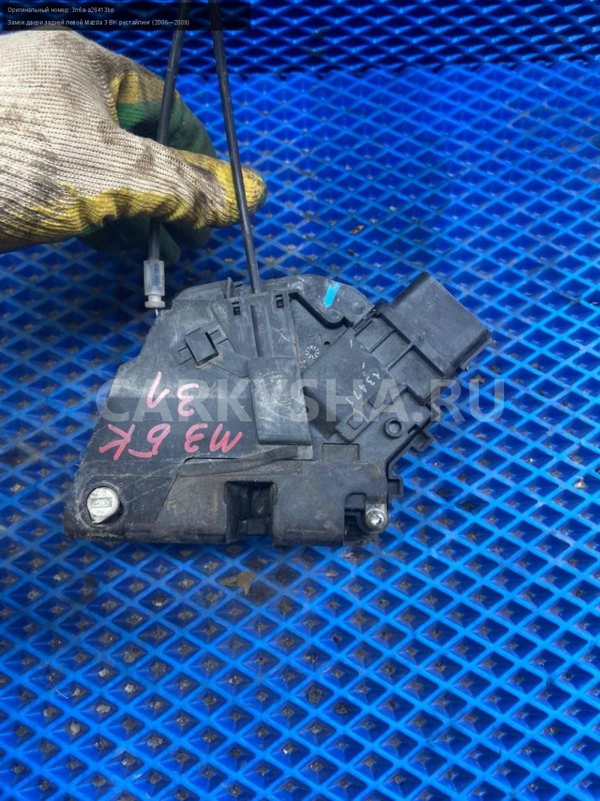 Mazda 3 BK хэтчбек, замок двери задней левой\nАртикул: 8158\n\nОриг. номер: 3n6a-a26413bp\nПроизводитель: MAZDA\nПримечание:Мазда 3 ВК, хэтчбек, замок двери задней левой, б/у. \n\nМарка: Mazda\nМодель: 3 BK рестайлинг (2006—2009)\nГод выпуска: 2007\nКузов тип: Хетчбэк\nДвигатель номер: Z6\nМодель двигателя: инжектор\nОбъем: 1.6\nТопливо: Бензин\nКоробка: Автомат\nЦвет: 34N\nПраво/Лево: Лево\nПеред/Зад: Зад\nСовместимости: Mazda 3 BK рестайлинг (2006—2009) 1.6 AT (105 л.с.)\nСовместимость: