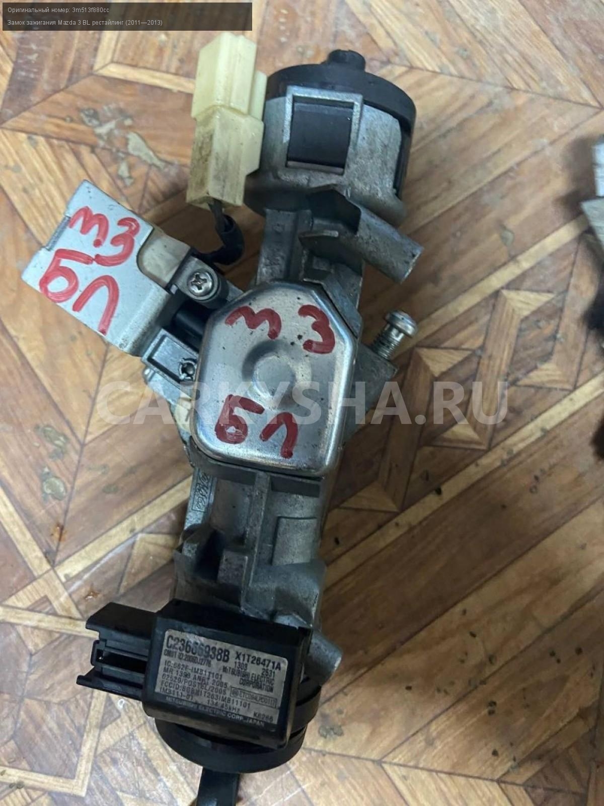 Mazda 3 BL, замок зажигания.\nАртикул: 6229\n\nОриг. номер: 3m513f880cc\nПроизводитель: MAZDA\nПримечание:Мазда 3BL, замок зажигания, б/у. \n\nМарка: Mazda\nМодель: 3 BL рестайлинг (2011—2013)\nГод выпуска: 2012\nКузов тип: Седан\nДвигатель номер: Z6\nМодель двигателя: инжектор\nОбъем: 1.6\nТопливо: Бензин\nКоробка: Автомат\nЦвет: Темно-Сервй\nСовместимости: Mazda 3 BL рестайлинг (2011—2013) 1.6 AT (105 л.с.)\nСовместимость: