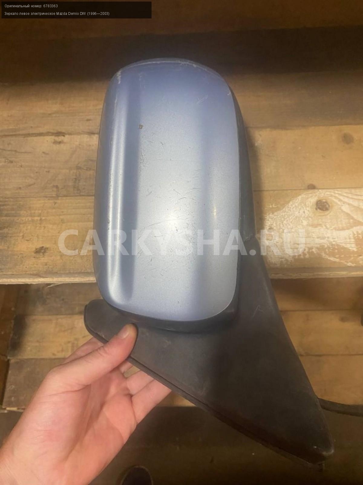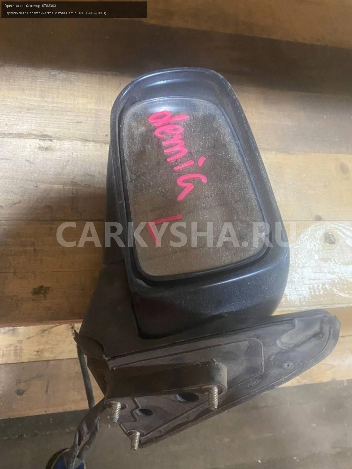 Mazda demio DW3 зеркало электрическое\nАртикул: 2212\n\nОриг. номер: 6783363\nПроизводитель: MAZDA\nПримечание:Mazda demio DW3 зеркало электрическое боковое левое,бу, а так же множество авто в разборе, работаем с регионами отправка тк, выкуп авто после дтп по всей России, отправка тк осуществляется после 100% оплаты, наложенным платежом не работаем\n\nМарка: Mazda\nМодель: Demio DW (1996—2003)\nКузов тип: Хетчбэк\nОбъем: 1.3\nТопливо: Бензин\nКоробка: Автомат\nПраво/Лево: Лево\nСовместимости: Mazda Demio DW (1996—2003) 1.3 AT (72 л.с.)\nСовместимость: