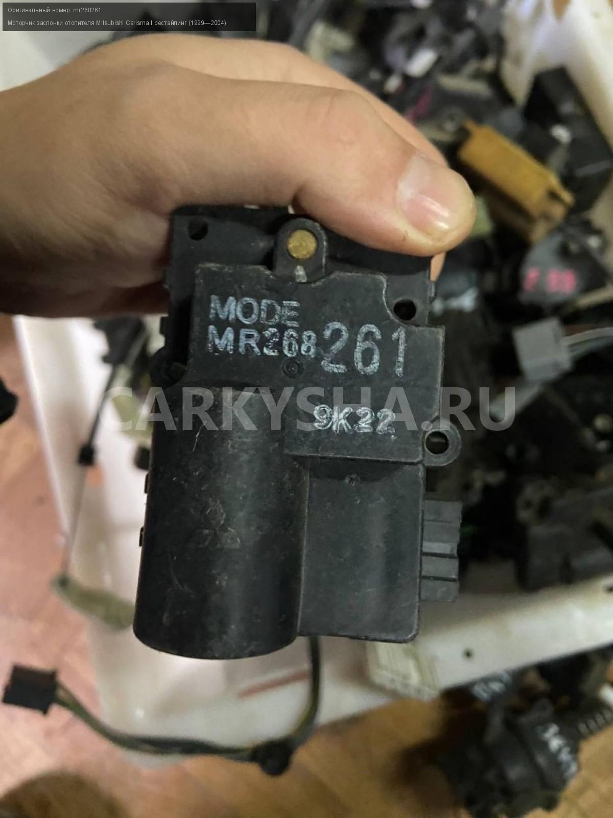Mitsubishi Carisma, моторчик заслонки печки.\nАртикул: 6416\n\nОриг. номер: mr268261\nПроизводитель: MITSUBISHI\nПримечание:Митсубиси каризма моторчик заслонки печки , б/у. \n\nМарка: Mitsubishi\nМодель: Carisma I рестайлинг (1999—2004)\nСовместимости: Mitsubishi Carisma I рестайлинг (1999—2004)\nСовместимость: