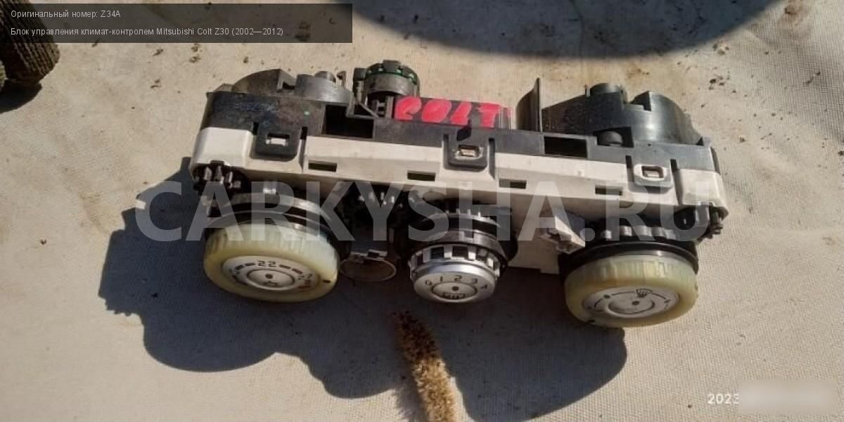 Mitsubishi colt 6 блок управления климатом\nАртикул: 2160\n\nОриг. номер: Z34A\nПроизводитель: MITSUBISHI\nПримечание:Mitsubishi colt 6 блок управления климатом.НАЛИЧИЕ ЗАПЧАСТИ УТОЧНИТЕ ПО ТЕЛЕФОНУ ИЛИ В СООБЩЕНИЯХ,б/у, а так же множество авто в разборе, работаем с регионами отправка тк, выкуп авто после дтп по всей России, отправка тк осуществляется после 100% оплаты, наложенным платежом не работаем, стоимость доставки не рассчитываем\n\nМарка: Mitsubishi\nМодель: Colt Z30 (2002—2012)\nКузов тип: Хетчбэк\nОбъем: 1.3\nТопливо: Бензин\nКоробка: Робот\nСовместимости: Mitsubishi Colt Z30 (2002—2012) 1.3 AMT (95 л.с.)\nСовместимость: