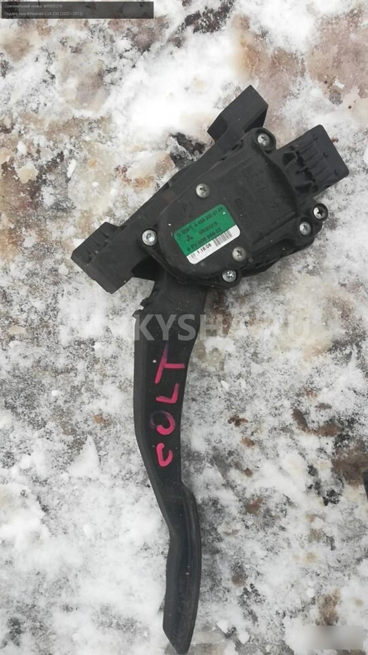Mitsubishi colt педаль газа\nАртикул: 681\n\nОриг. номер: MR955216\nПроизводитель: MITSUBISHI\nПримечание:Mitsubishi colt 6 1.3 педаль газа.НАЛИЧИЕ ЗАПЧАСТИ УТОЧНИТЕ ПО ТЕЛЕФОНУ ИЛИ В СООБЩЕНИЯХ,б/у, а так же множество авто в разборе, работаем с регионами отправка тк, выкуп авто после дтп по всей России, отправка тк осуществляется после 100% оплаты, наложенным платежом не работаем, стоимость доставки не рассчитываем\n\nМарка: Mitsubishi\nМодель: Colt Z30 (2002—2012)\nКузов тип: Универсал\nОбъем: 1.3\nТопливо: Бензин\nКоробка: Механика\nСовместимости: Mitsubishi Colt Z30 (2002—2012) 1.3 MT (92 л.с.)\nСовместимость: