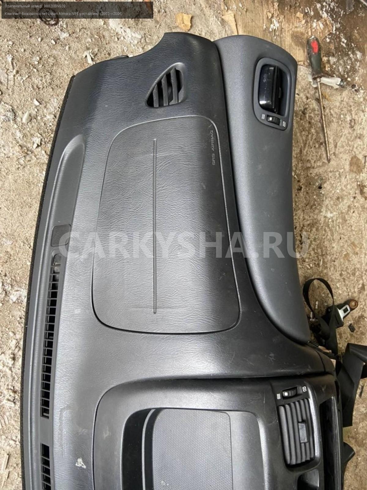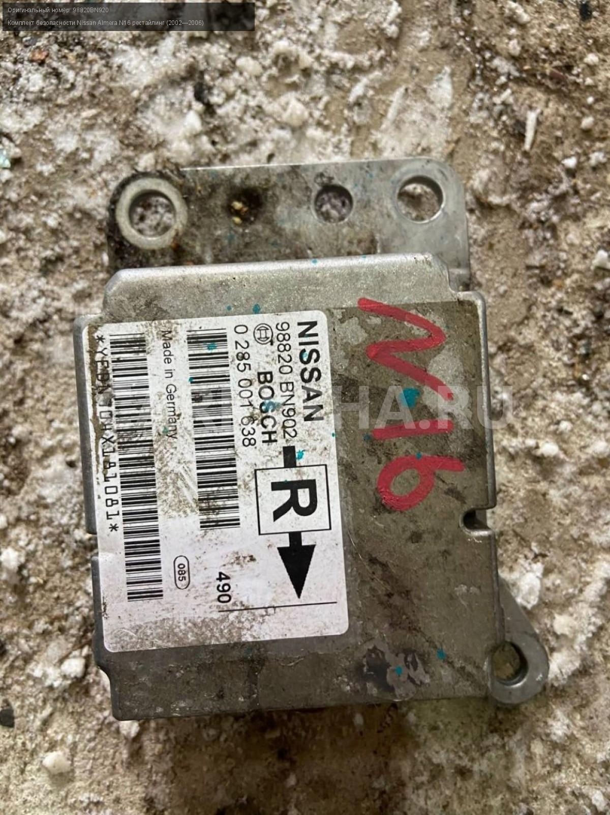 Nissan Almera N16, комплект безопасности .\nАртикул: 7154\n\nОриг. номер: 98820BN920\nПроизводитель: NISSAN\nПримечание:Ниссан Альмера N16, комплект безопасности в сборе как на фото , б/у. \n\nМарка: Nissan\nМодель: Almera N16 рестайлинг (2002—2006)\nГод выпуска: 2004\nКузов тип: Хетчбэк\nДвигатель номер: QG18DE\nМодель двигателя: инжектор\nОбъем: 1.8\nТопливо: Бензин\nКоробка: Механика\nЦвет: Черный\nСовместимости: Nissan Almera N16 рестайлинг (2002—2006) 1.8 MT (116 л.с.)\nСовместимость: