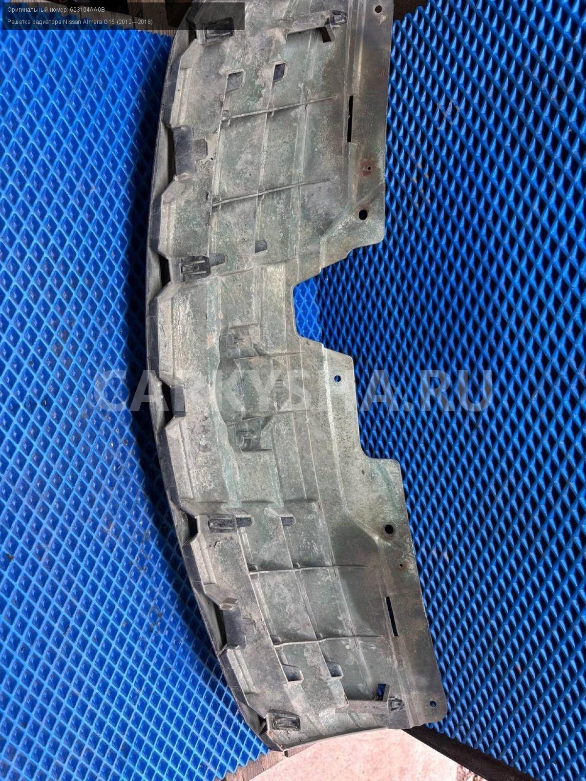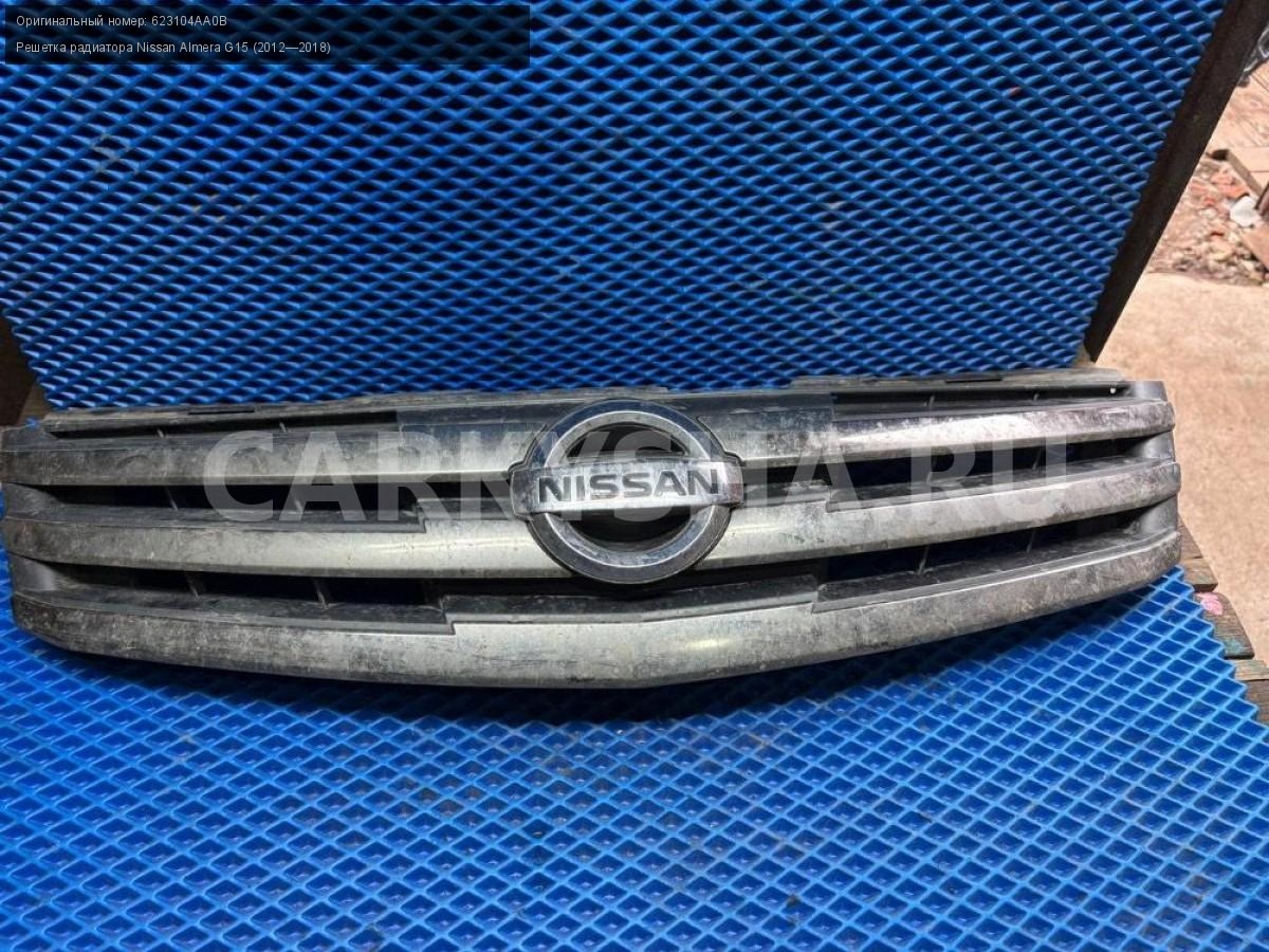 Nissan Almera G15, решетка радиатора.\nАртикул: 8697\n\nОриг. номер: 623104AA0B\nПроизводитель: NISSAN\nПримечание:Ниссан Альмера G15, решетка радиатора, б/у. \n\nМарка: Nissan\nМодель: Almera G15 (2012—2018)\nГод выпуска: 2015\nКузов тип: Седан\nДвигатель номер: K4MA490черный\nМодель двигателя: инжектор\nОбъем: 1.6\nТопливо: Бензин\nКоробка: Механика\nЦвет: Черный\nСовместимости: Nissan Almera G15 (2012—2018) 1.6 MT (102 л.с.)\nСовместимость: