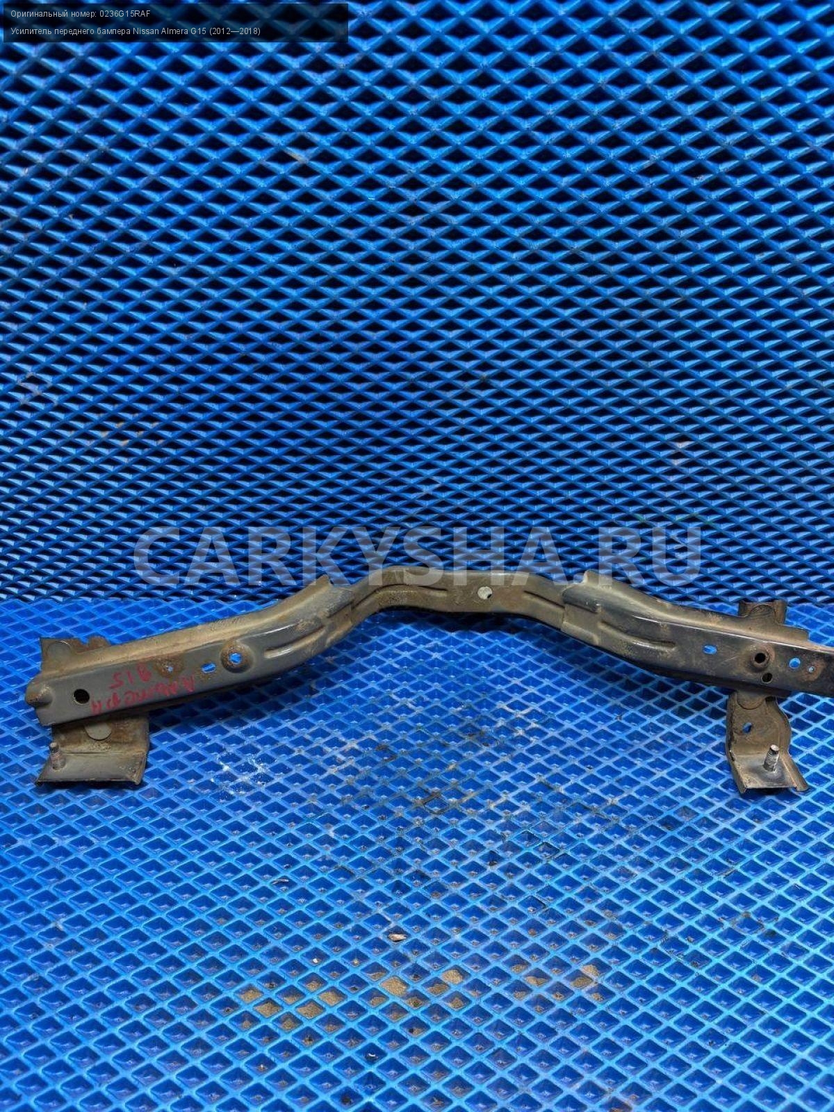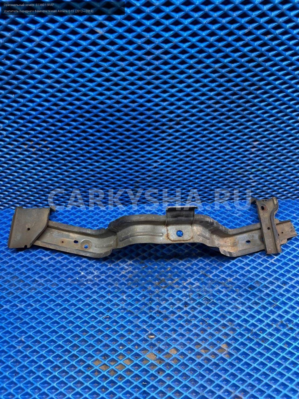 Nissan Almera G15, усилитель переднего бампера вер\nАртикул: 8675\n\nОриг. номер: 0236G15RAF\nПроизводитель: NISSAN\nПримечание:Ниссан Альмера G15, усилитель переднего бампера верхний, б/у. \n\nМарка: Nissan\nМодель: Almera G15 (2012—2018)\nГод выпуска: 2015\nКузов тип: Седан\nДвигатель номер: K4MA490черный\nМодель двигателя: инжектор\nОбъем: 1.6\nТопливо: Бензин\nКоробка: Механика\nЦвет: Черный\nВерх/Низ: Верх\nПеред/Зад: Перед\nСовместимости: Nissan Almera G15 (2012—2018) 1.6 MT (102 л.с.)\nСовместимость: